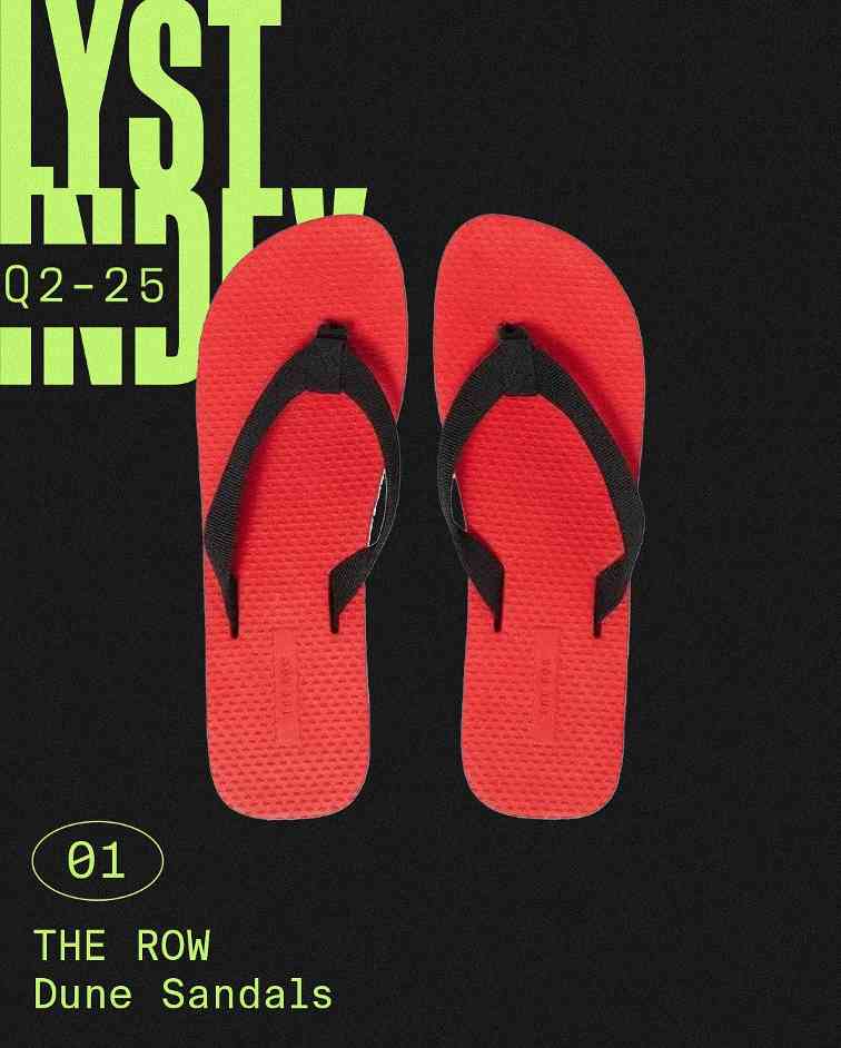 一双售价 690 美元的红色橡胶人字拖?没错,想必各位可能已经在社交媒体上看到过这双被广泛讨论的鞋款,来自 The Row 推出的 Dune 人字拖。在最新公布的 Lyst 2025 年第二季度单品榜中,这款拖鞋登上榜首。