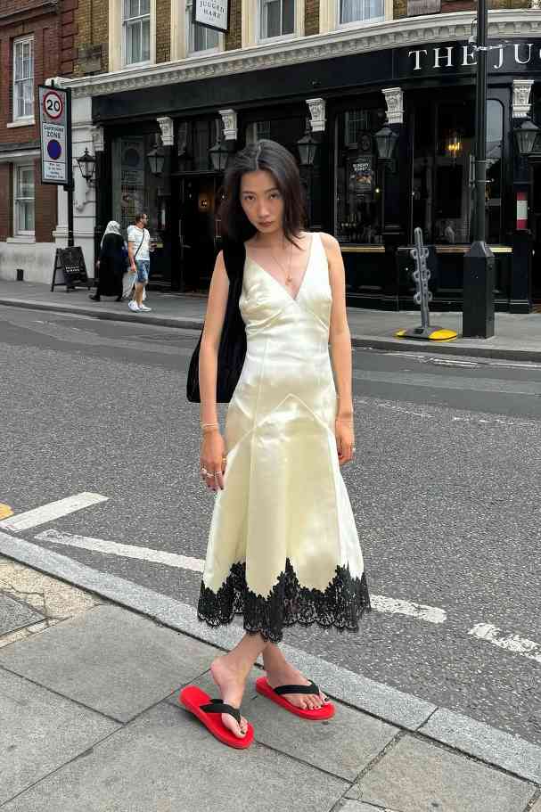 至于它为何爆火,不同媒体也有不同的看法。例如演员 Jonathan Bailey 在六月一次公开亮相中穿上它(同款的全黑色版本)之后,关注度出现了最明显的飙升。同时,这也可能归功于人字拖成为引领夏季潮流的必备单品。Lyst 则认为,它属于精致风格的单品,契合当前追求简约和松弛感的造型趋势。