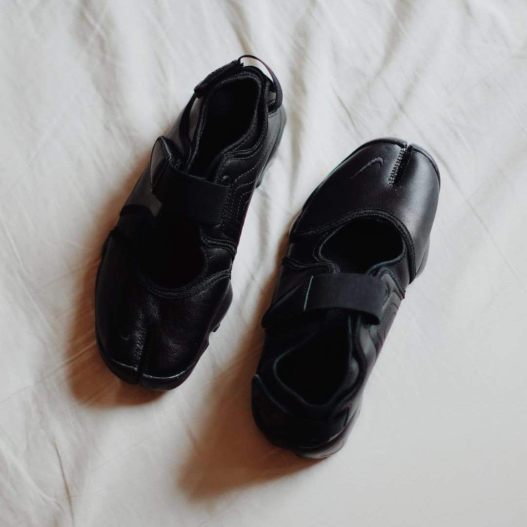 很明显,Air Rift 让人印象深刻的原因,很大程度来源于它的 Tabi-Toed 式分趾设计。尽管如今这一元素在很多人看来已经被 Maison Margiela 的代表作赋予了更多的时尚意味,但之于 Nike 来说,Air Rift 的灵感却更多来自于运动领域: