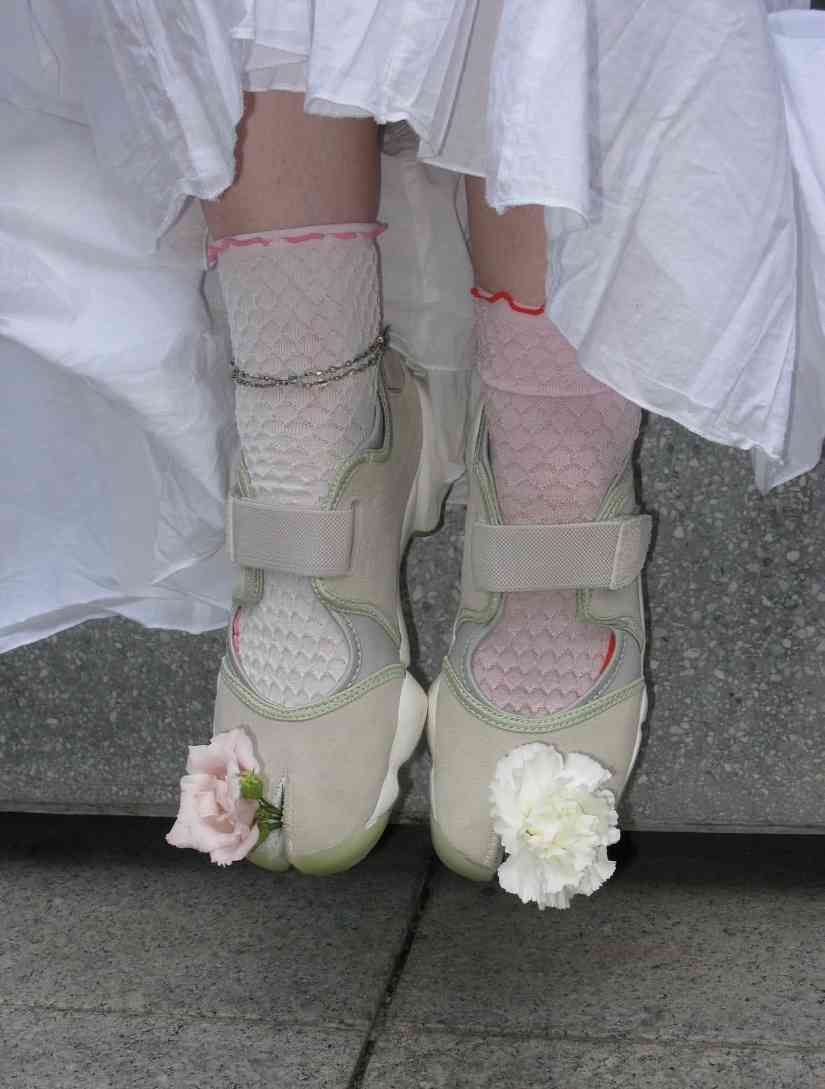 相信每个人都能感受到的是,这两年来「女性化元素」愈发成为了鞋履领域的热门流行趋势之一。如同围绕 Miu Miu、SHUSHU/TONG、Cecilie Bahnsen、Simone Rocha 等一系列带有明显特征的时尚品牌展开的合作,开始让纱质、花卉、蕾丝、珍珠、蝴蝶结成为热门的设计元素,备受女性消费群体和市场欢迎。