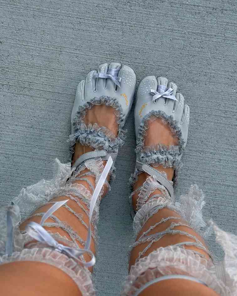 而在如今,旗下 Jennie 同款型号 V-Soul 的热度迅速攀升,更重要的一点是,它让「五趾鞋」从小众走向主流,融入进了更多人的日常搭配之中。究其原因,很明显的一点是其融入了玛丽珍式的女性化设计元素,早先我们曾在不同的文章中提及过,这两年来此类风格愈发成为了鞋履领域的热门流行趋势之一,备受女性消费群体和市场欢迎。