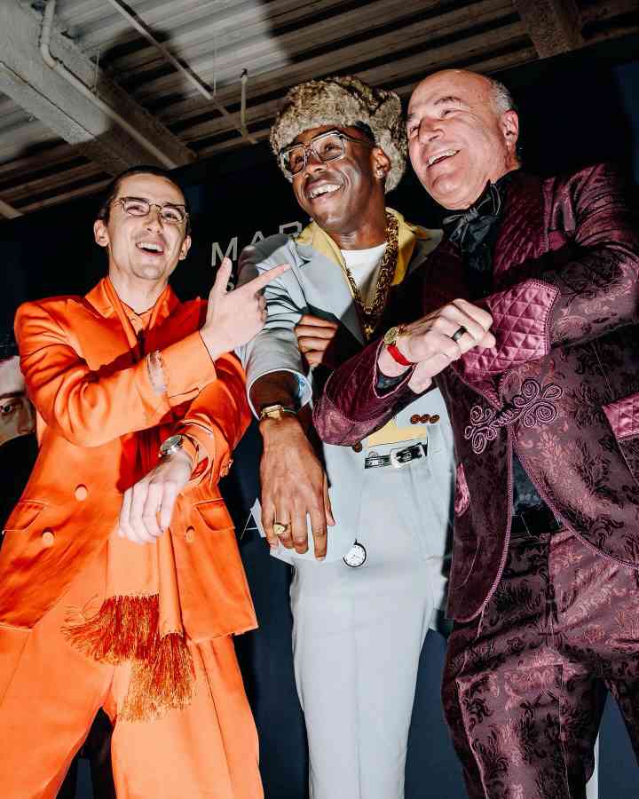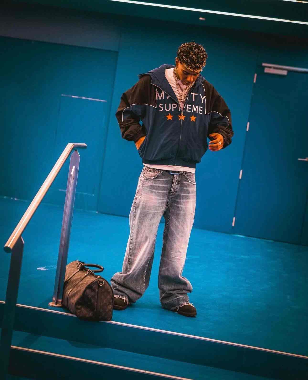 无论是 Chrome Hearts x Timberland 联名靴子与亮橙色条纹外套,抑或是 LOEWE、Celine 与 Nike 球鞋、Nike ACG、Dickies 卫衣等功能性单品等等,将街头文化与高端品牌的混搭,与纯粹的高定审美不同,展现了不同于以往红毯精致风格的语境。他在公开场合的造型显露出更大胆和更个人化的审美倾向。