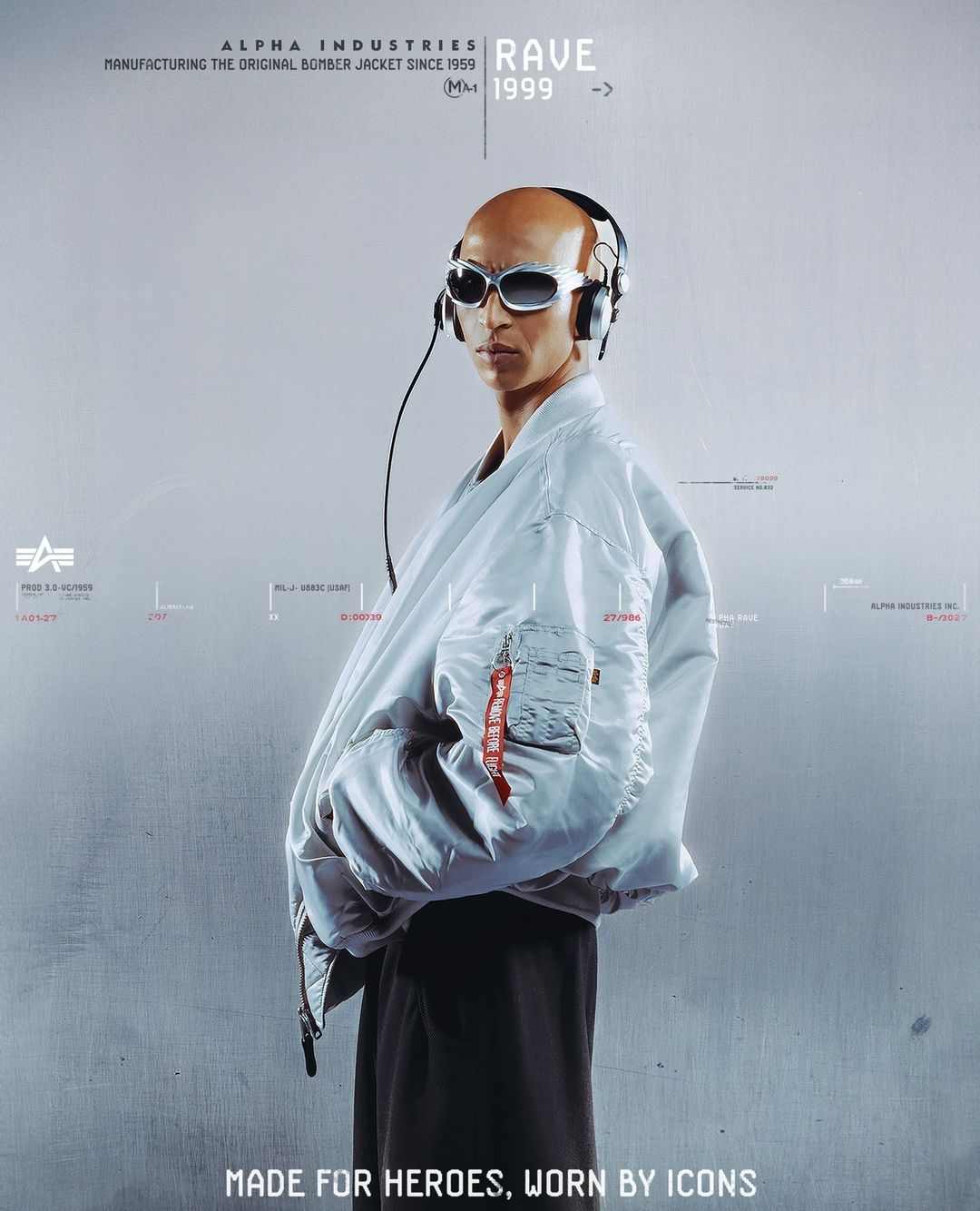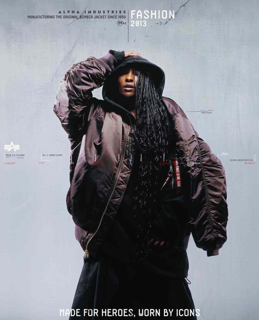 除了为客制合作背书的 adidas,近期还有另一个品牌开始拥抱起了亚文化根源 —— Alpha Industries。这个成立于 1959 年的美国服装品牌通过一支围绕经典版型 MA-1 夹克的广告「Made For Heroes, Worn By Icons 为英雄而制,为时尚偶像所穿」,完成对亚文化致敬的同时,也以官方的姿态展现了与这些小众文化融合后的形态。