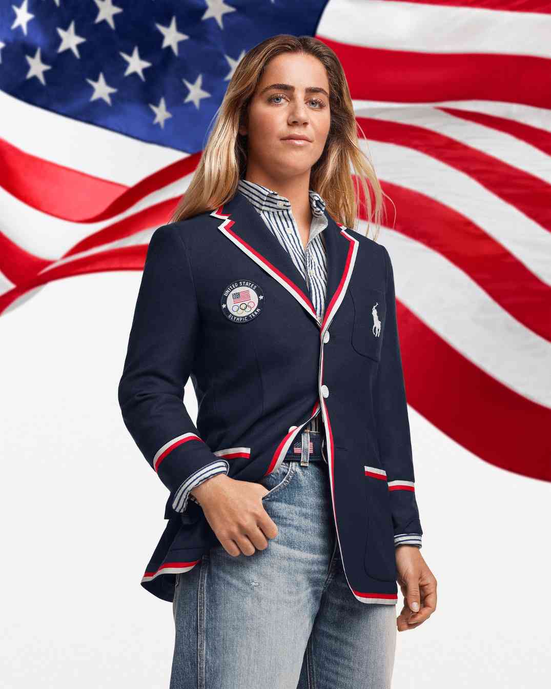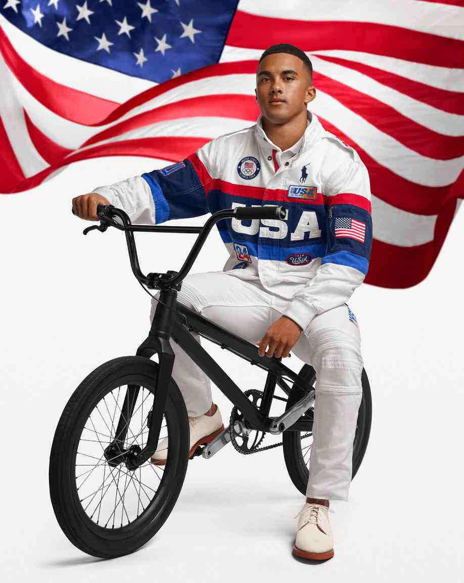 开幕式的服装营造出一些正式氛围感,采用了经典的 Ralph Lauren 剪裁,带来包括合身的西装外套、针织领带、条纹衬衫和牛仔裤。而在闭幕式上,运动员的服装风格则更倾向于美国腹地,而非常春藤联盟,服装包括带有贴片装饰的赛车风格夹克和白色牛仔裤。