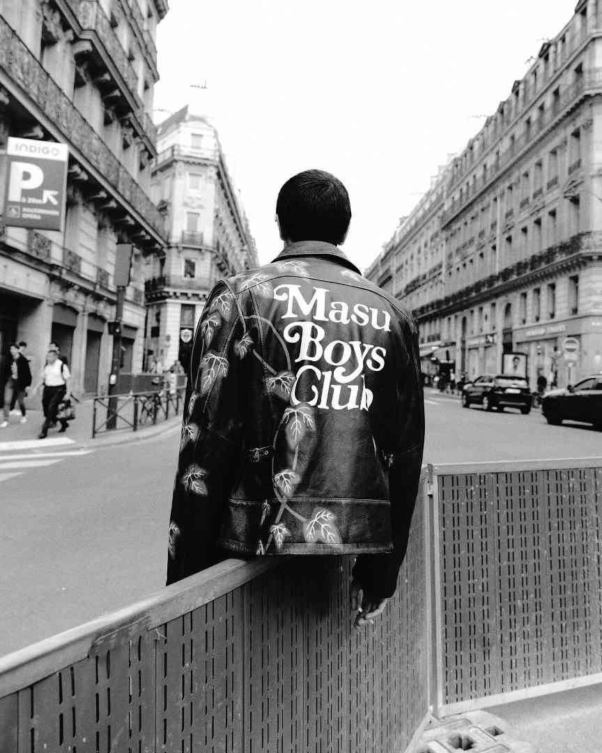 不仅如此, 此次 M A S U 还在巴黎曝光了与 VERDY 合作的皮衣,作为 2025 春夏系列的隐藏单品背后 VERDY 设计字体的「MASU BOYS CLUB」让这个系列更具话题度,可以说是这个系列中最值得瞩目也是驾驭门槛最低的单品了。
