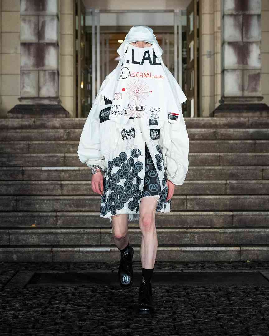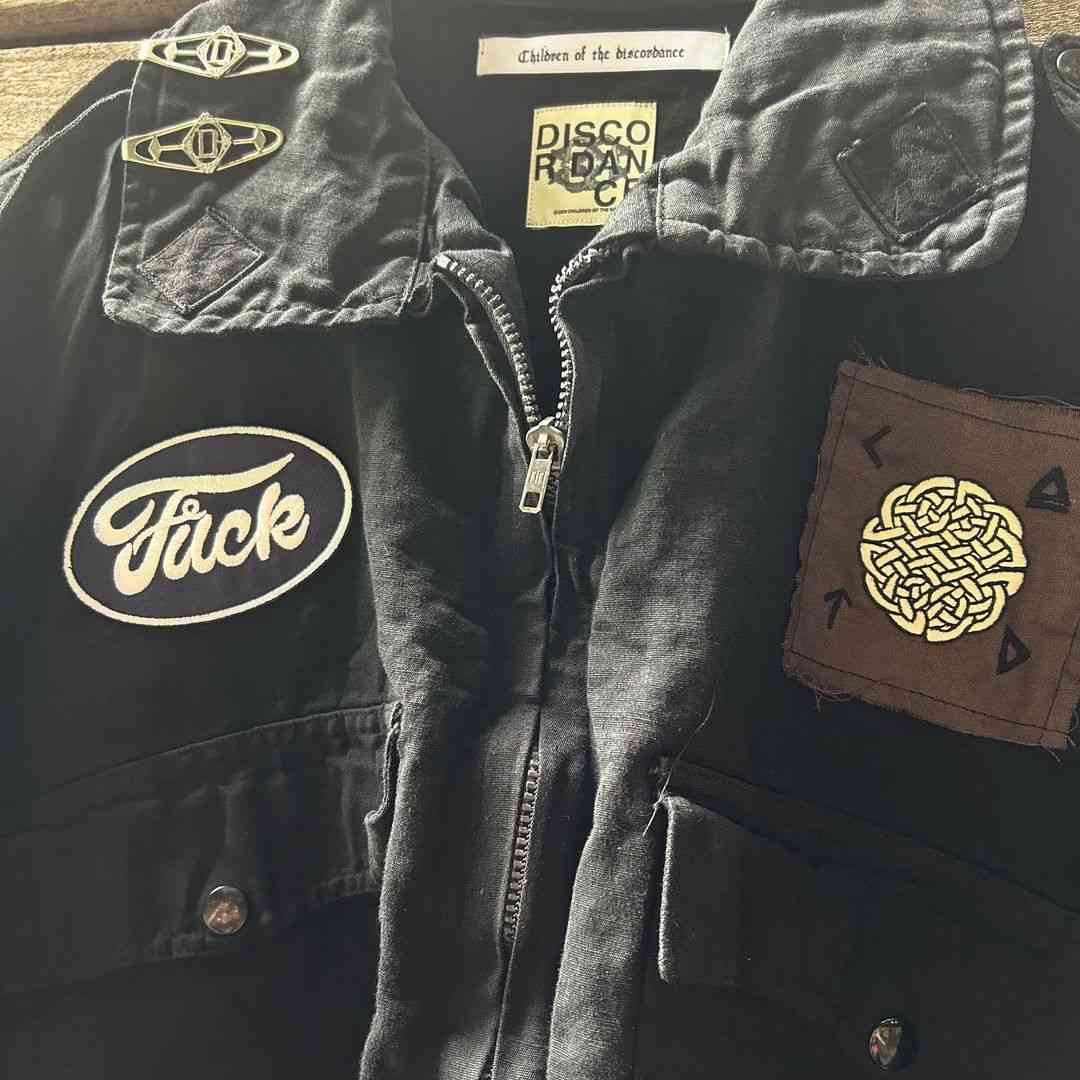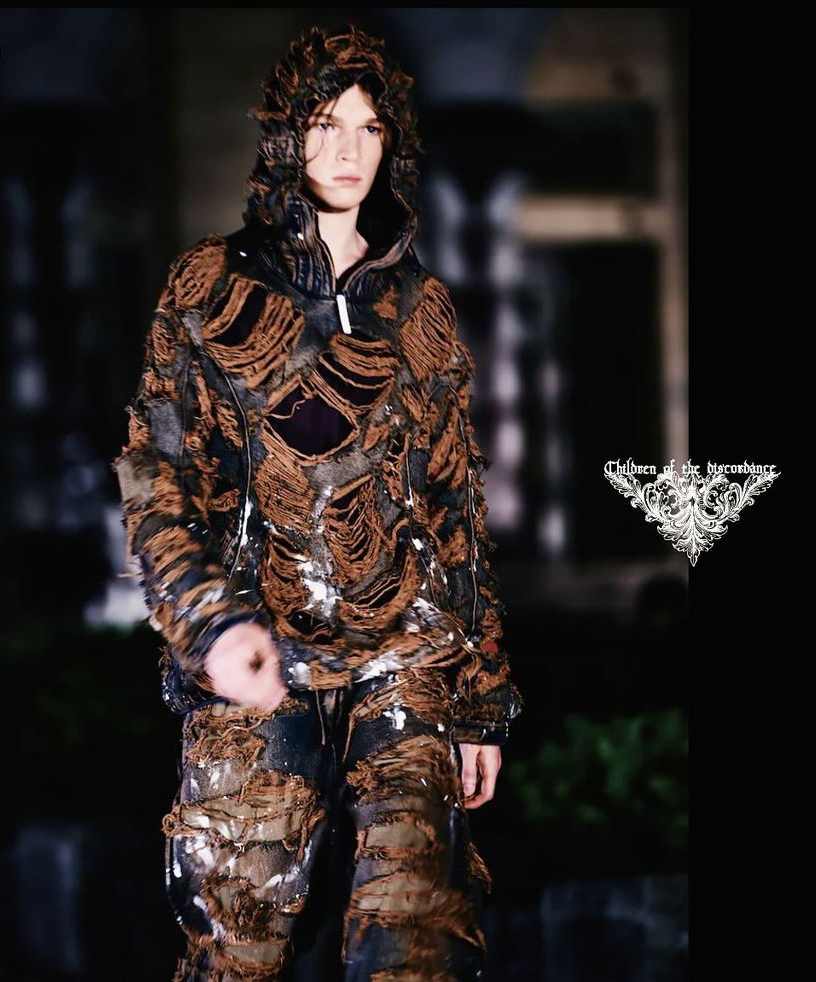 将各处收集的老旧衣物,或是诸如废旧贴布、徽章、标牌等不同装饰元素,通过极具创意且视觉配搭出彩的布局排列,进行二次组合,营造出混合反差感十分强烈的全新外观,是 Children of the Discordance 的拿手好戏。