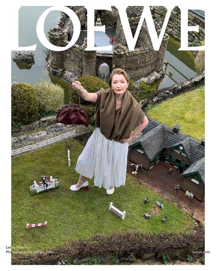该片由时尚摄影师 Juergen Teller 拍摄于世界上最古老的微缩模型村 Bekonscot,建于 1929 年的该镇堪称真实版「小人国」,在 Lesley Manville、070 Shake 等名人的出镜演绎下呈现异想天开和怪诞的视觉效果,也反映了系列中的各种线条与关乎于比例的细节设计。