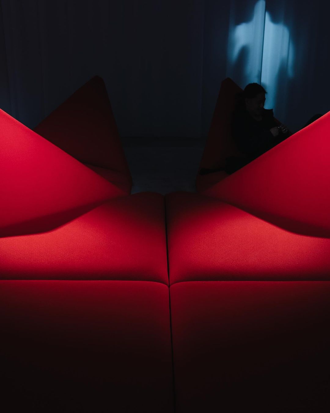 在这样一个特别的空间中,Paulin Paulin Paulin 的招牌「The Dune 沙丘沙发」坐镇中心位置,夺人眼球的红色模块,被自由拆解组合成或平躺、或倾斜翘起的立体感视觉。