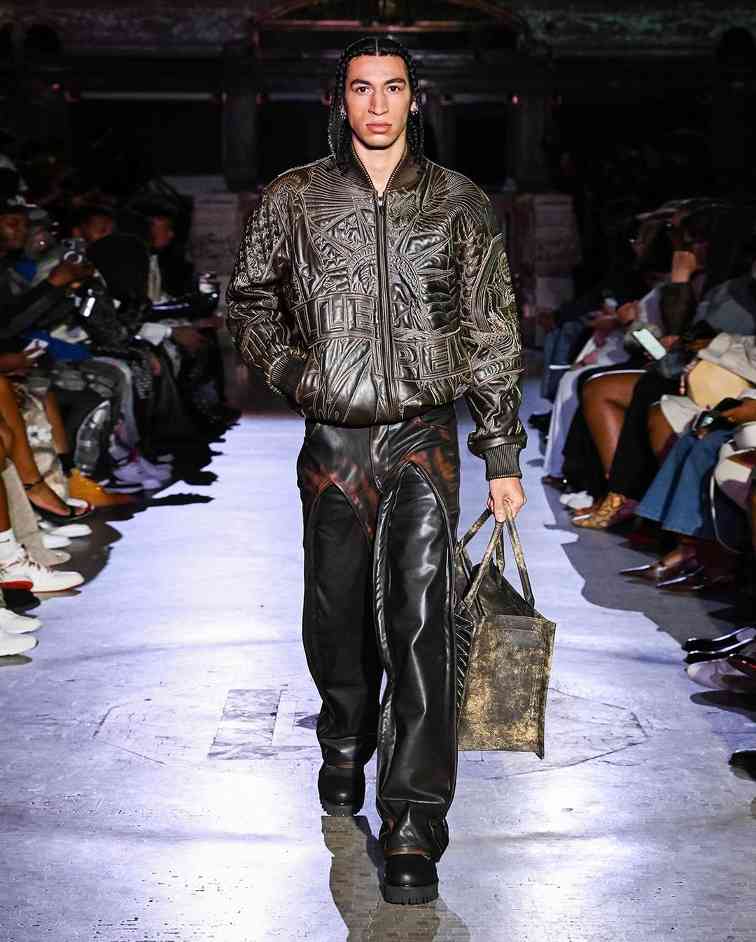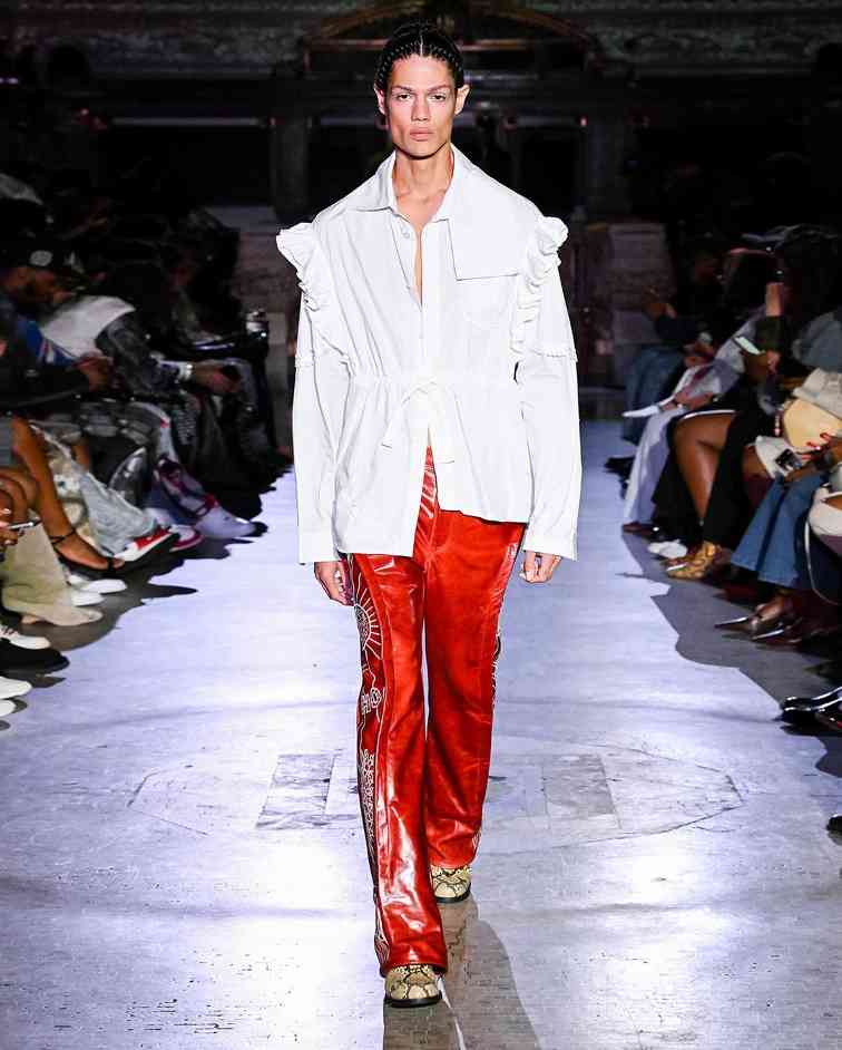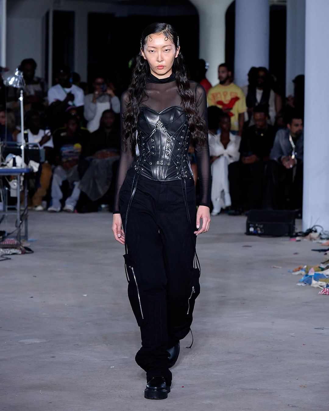 没有任何一个品牌,会在一夜之间顿悟般开窍,Who Decides War 同样如此。新季作品的眼前一亮,绝非一日之功;设计双人组 Ev Bravado 和 Tela D’Amore 对高级时装和进美学思路的持续探索,显然是品牌「厚积薄发」的关键所在。