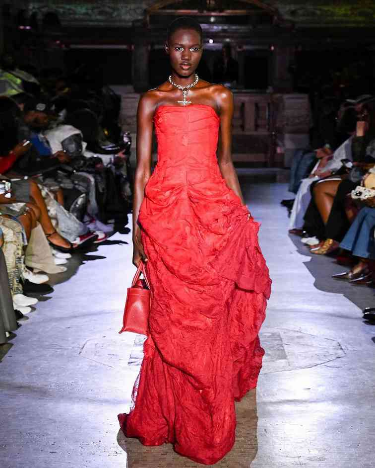Who Decides War 在近日落幕的纽约时装周秀场上,正式带来了品牌 2025 春夏系列作品。设计二人组 Ev Bravado 和 Tela D’Amore 共同献上了一场从维多利亚时代复兴而来的时尚盛宴。