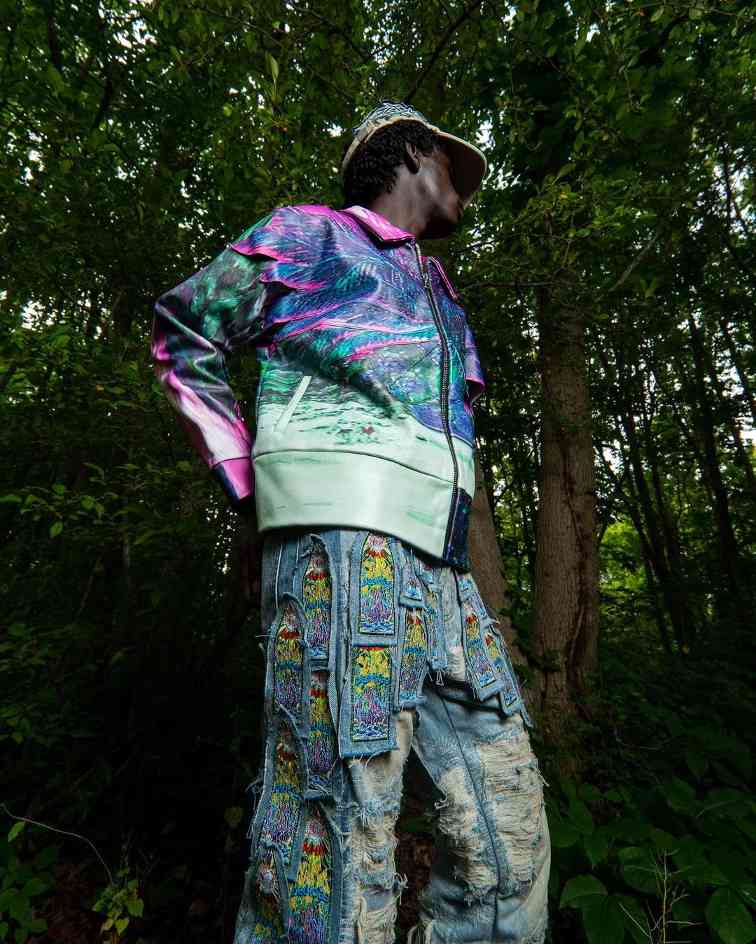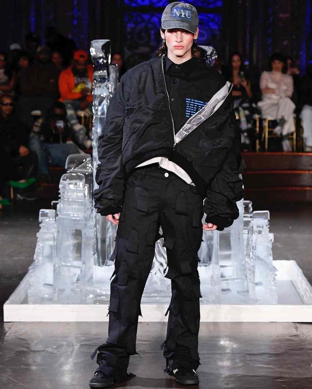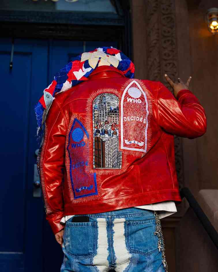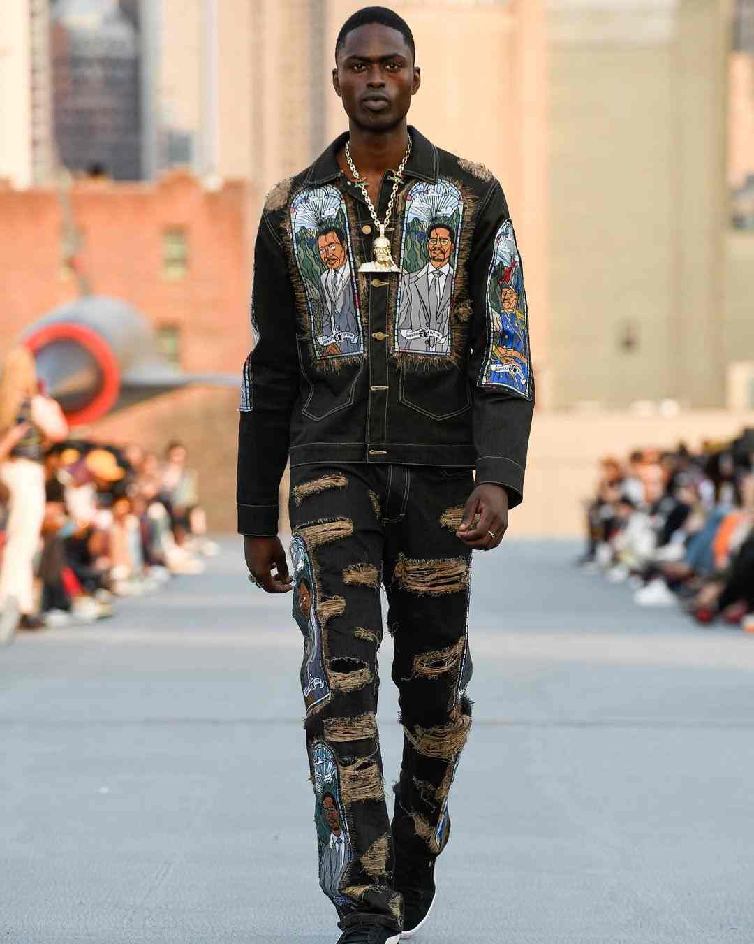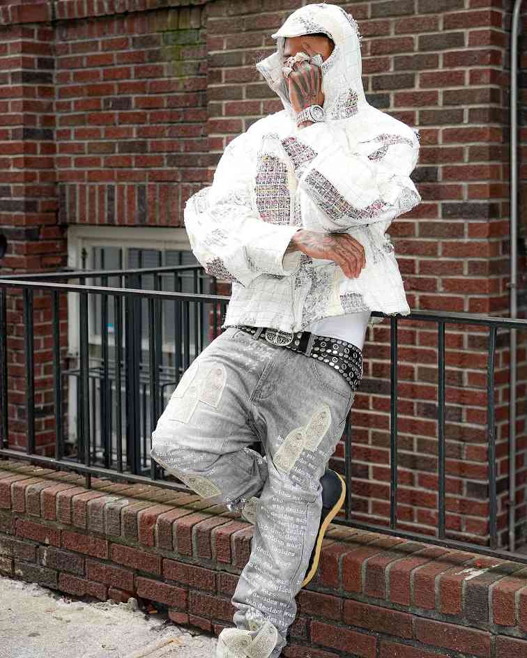 Who Decides War 打响名声的标志性单品中,诸如城堡牛仔夹、糜烂刺绣牛仔裤等,在第一眼视觉上,同样极具冲击力;但从长期定义而言,其仍隶属于「高调张扬」派系的街头风格语境,很难直接与「设计师时装」划上等号。
