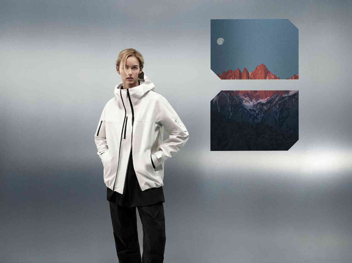 而运用在 VERTEX 系列的三合一款式的「双拉链设计」,通过廓形变化有效解决人们在不同天气的穿着需求。比如当天气变冷时,可切换为宽松版型状态,内里搭配轻薄羽绒服;与之相反的修身版型更适合冲锋衣单穿。