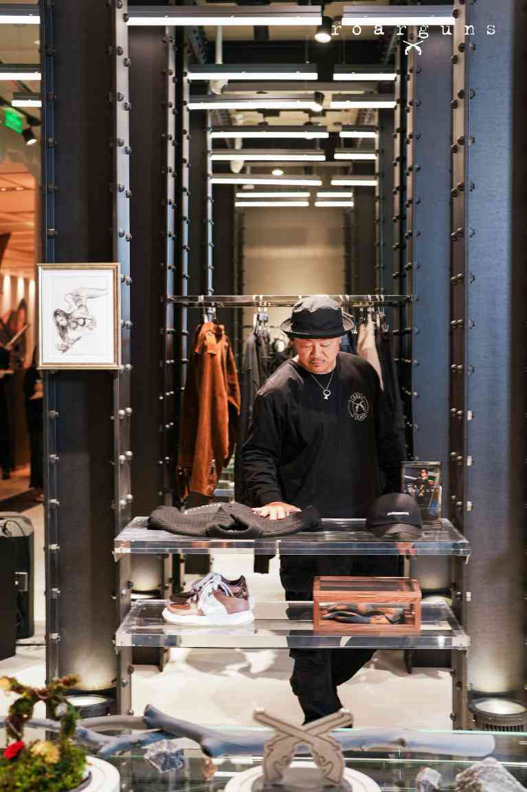 roarguns 为大家熟知的是其巧妙将暗黑风格与松弛优雅简约奢华的结合,打破传统街头的界限去开辟先锋时尚的设计语言。藉此全国首店开幕之际,我们也与 roarguns 品牌设计师滨中三郎 Saburo Hamanaka 先生进行对话,听听他对于新店开幕以及更多 roarguns 设计背后的故事。