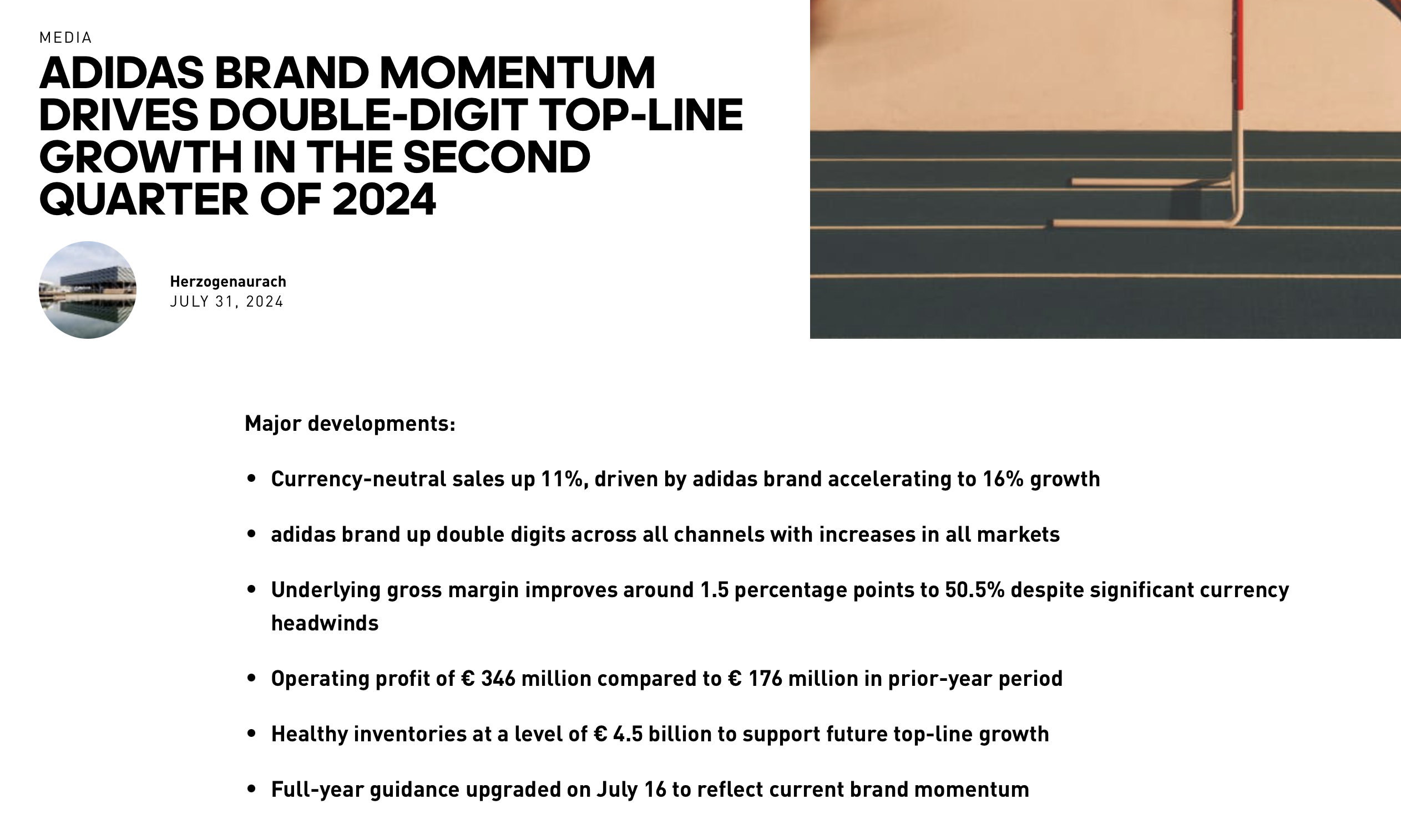 在过去的六个月中,adidas 在韩国市场表现平稳增长,根据第二季度的财报显示收入同比增长 6%,主要得益于品牌生活方式和运动表现产品的强劲需求,特别是鞋类产品,诸如早先 Samba 和 Taekwondo 等热门款式在当地的流行推动。
