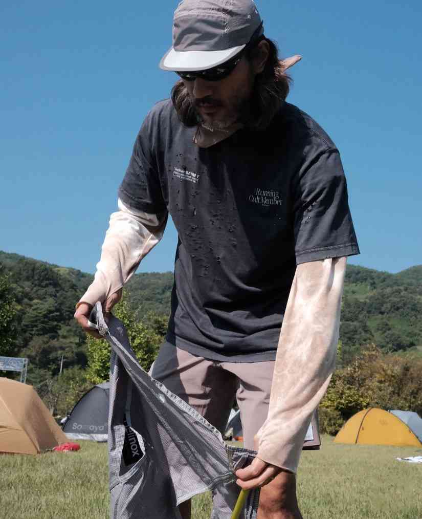 聚焦于产品上也同样如此。目前品牌对于跑步装备的分类主要分为越野跑、路跑和攀岩三大品类。而除了最常见的速干运动服外,你能看到更多具有户外功能属性款式的占比,其中 Justice™ Cordura®水袋马甲和 AuraLite™ 长袖 T 恤算是比较招牌的产品,还是不错的 Gorpcore 造型利器。