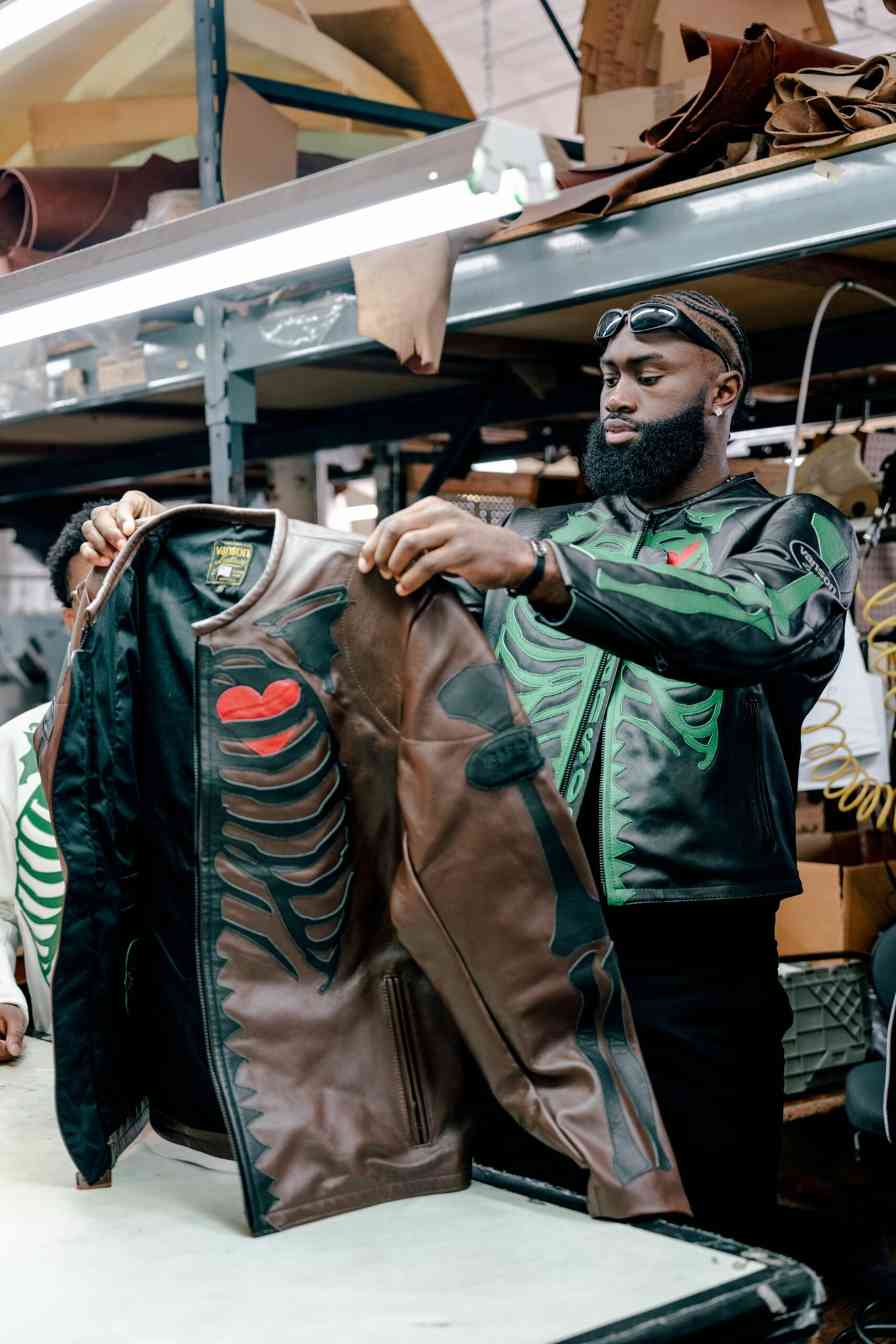 同时 Vanson Leathers 在半个世纪的品牌历程中鲜有扩张,尤其是在近来频繁的合作企划中当然清楚如今在街头时尚领域的受欢迎程度,但依旧选择在马萨诸塞州工厂手工缝制每一件皮衣,并没有因为订单激增选择外包或扩大人员规模,所以很多订单会有漫长的等待过程,而这种「另类」的限量供应模式也在一定程度上满足了潮流玩家的获得感,甚至很多球星或艺人直接去工厂参与定制细节。所以在复古回潮的当下,Vanson Leathers 骸骨机车皮衣的破圈似乎只是开始,完整的品牌矩阵下有着太多可供挖掘的纵深。