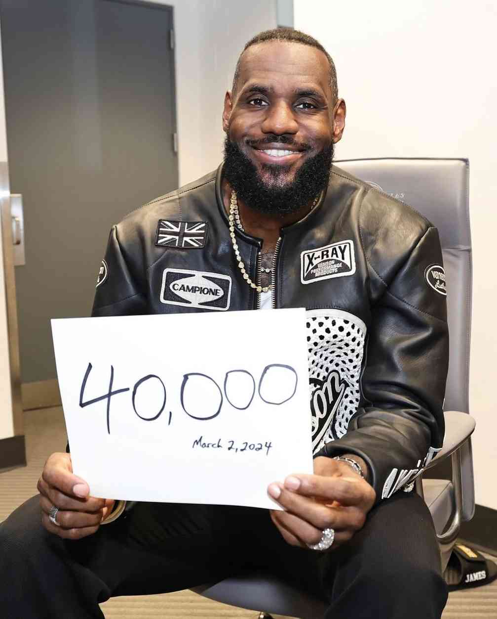 在达成 40,000 分历史时刻的场下,LBJ 着用 Aimé Leon Dore x Vanson Leathers Raffia Leather Jacket | Via Essentially Sports