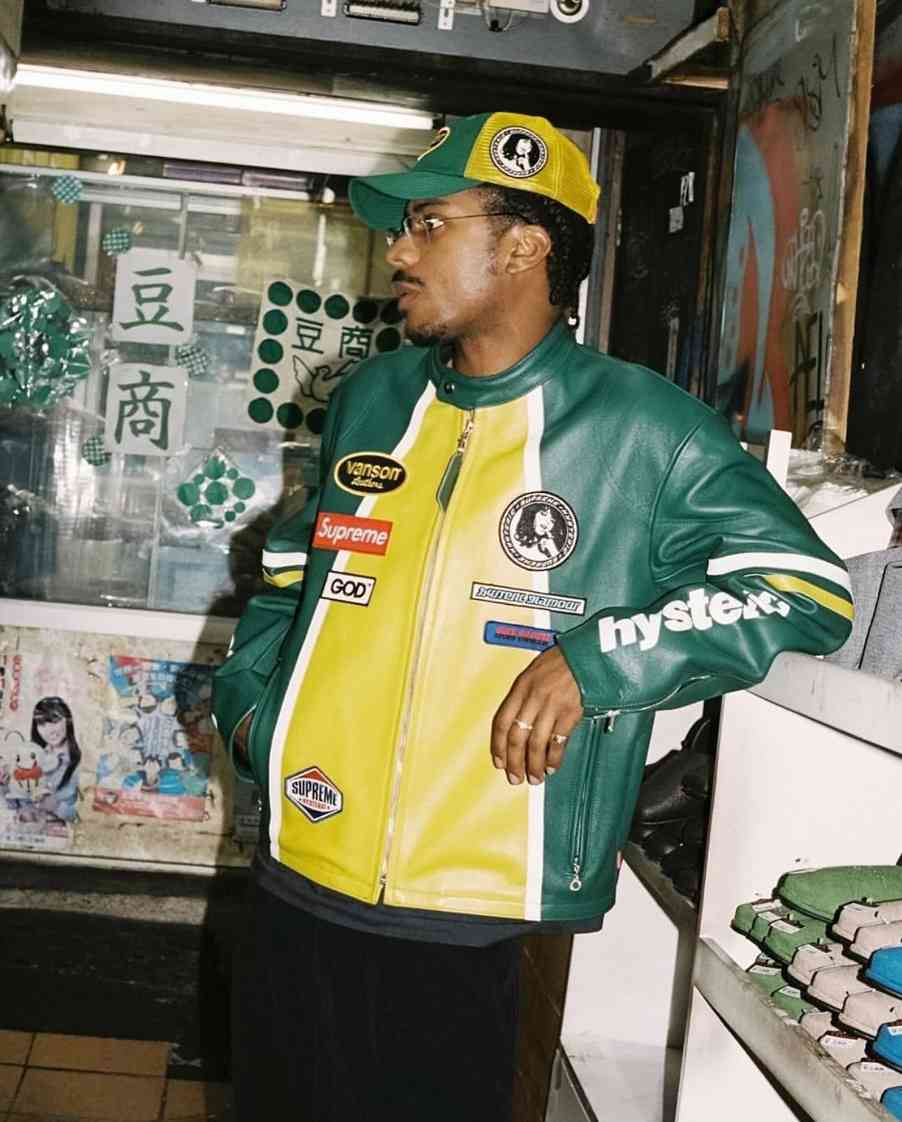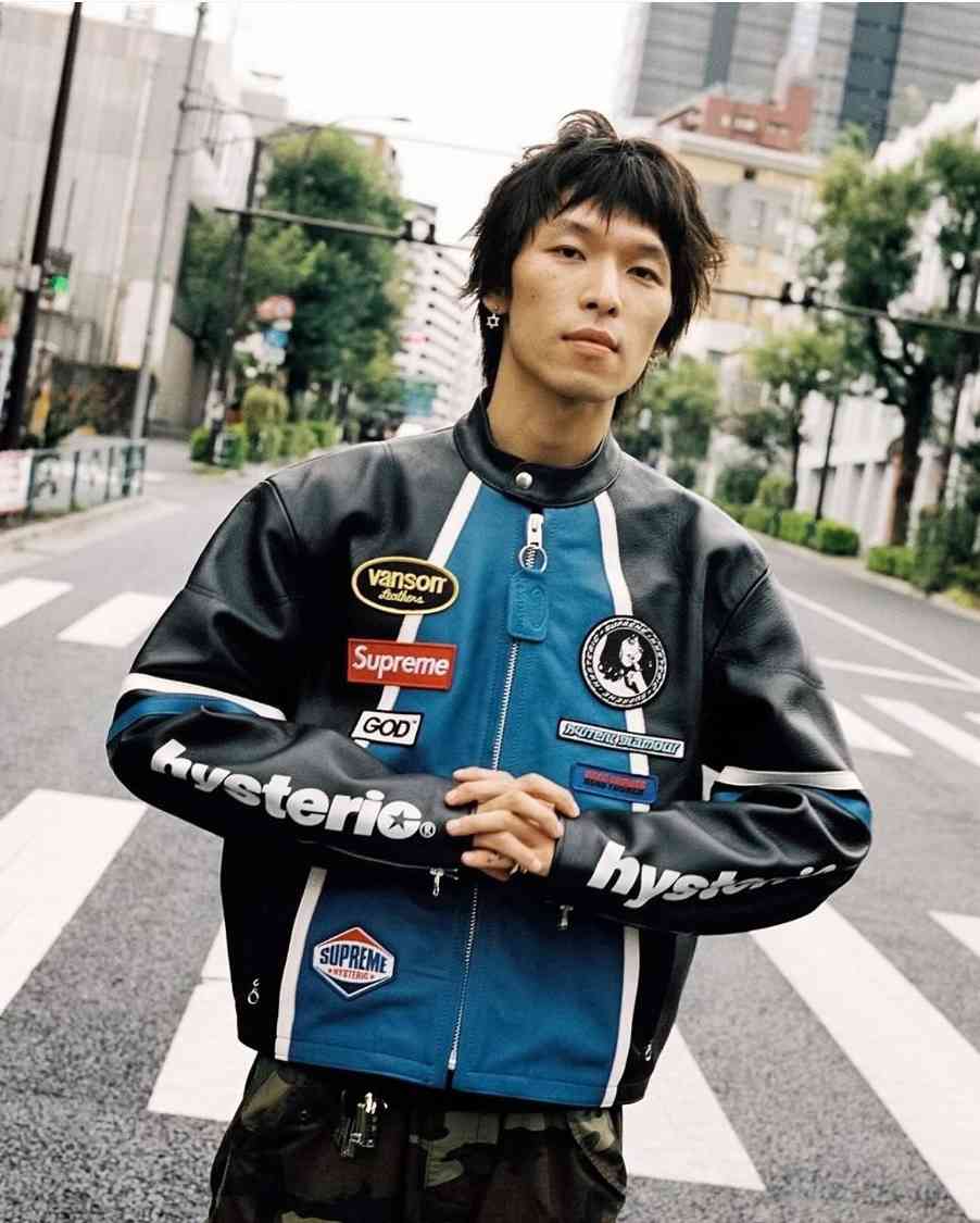 昨天刚刚发布的原宿代表性朋克品牌 HYSTERIC GLAMOUR 与 Supreme 的联名就佐证了这一点,双方选择以 Vanson Leathers 经典的机车夹克作为此次企划的核心单品,在机车皮衣硬挺的衣身上透过拼色设定、Patch 元素以及醒目的印花来彰显联名过程中碰撞出的火花。所以在如今街头语境中将 Vanson Leathers 作为重磅甚至是核心单品的「底板」似乎已经成为共识,在这个共识下延伸出诸多可能性。