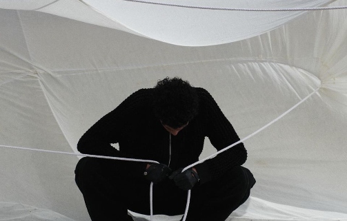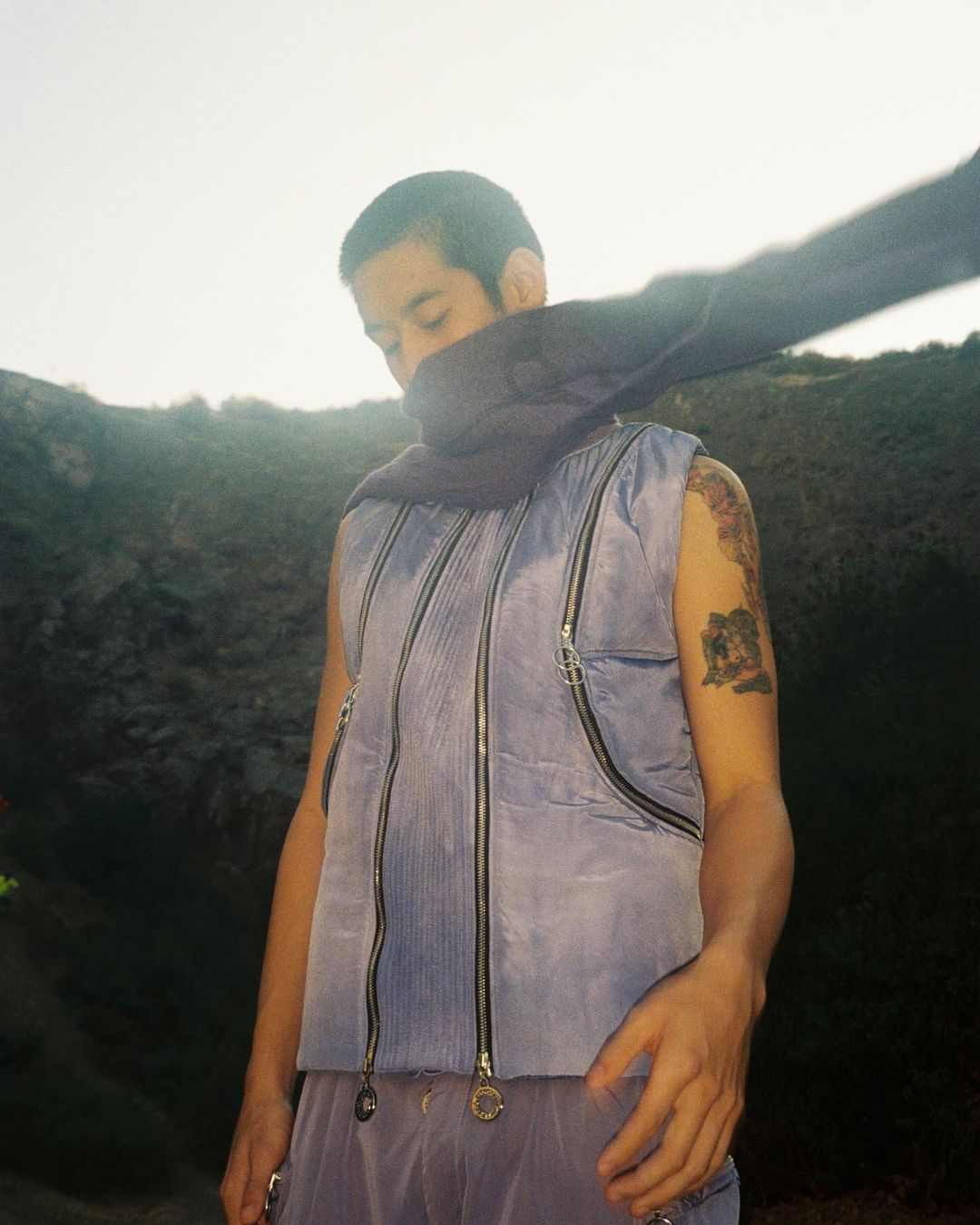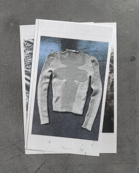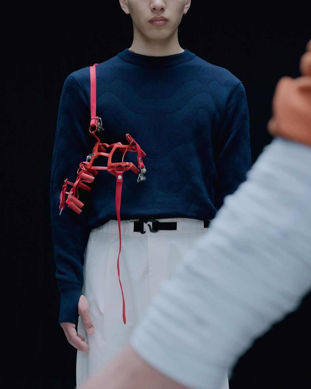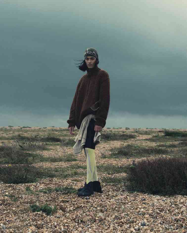 而除了上述两位在先锋意境和简约质感中反复拿捏平衡的代表,当下的户外时尚针织品诠释流派中,也有着像 Charlie Constantinou 这样极致视觉系的个性玩家。