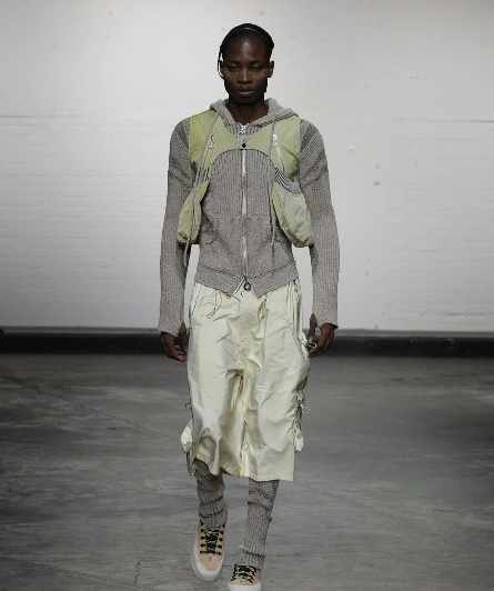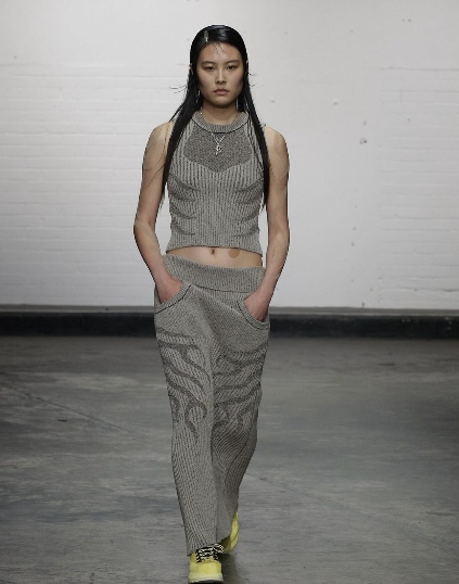 而且得益于 Charlie Constantinou 天马行空的立体轮廓塑造力,针织面料能被其巧妙运用到诸如披肩斗篷、紧身背心、长裙、腿套等更多元的款式类目之中,将单品的完整度与丰富度进行了极大的提升。