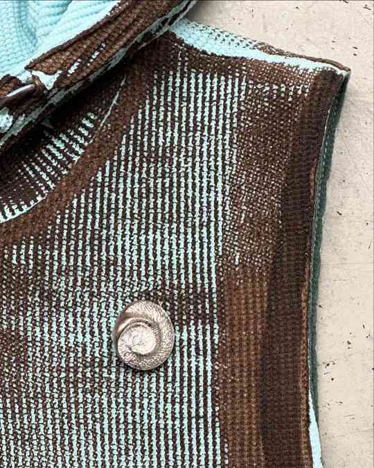 奇异的立体廓形、醒目且风格强烈的大面积印花图案,以及独特的漂染式色调,这些帮助 Charlie Constantinou 迅速成名的招牌画风特征,也同样出现在品牌的多件单品之中,不断延续着自己「异世界末日」般氛围的飘渺美学概念。