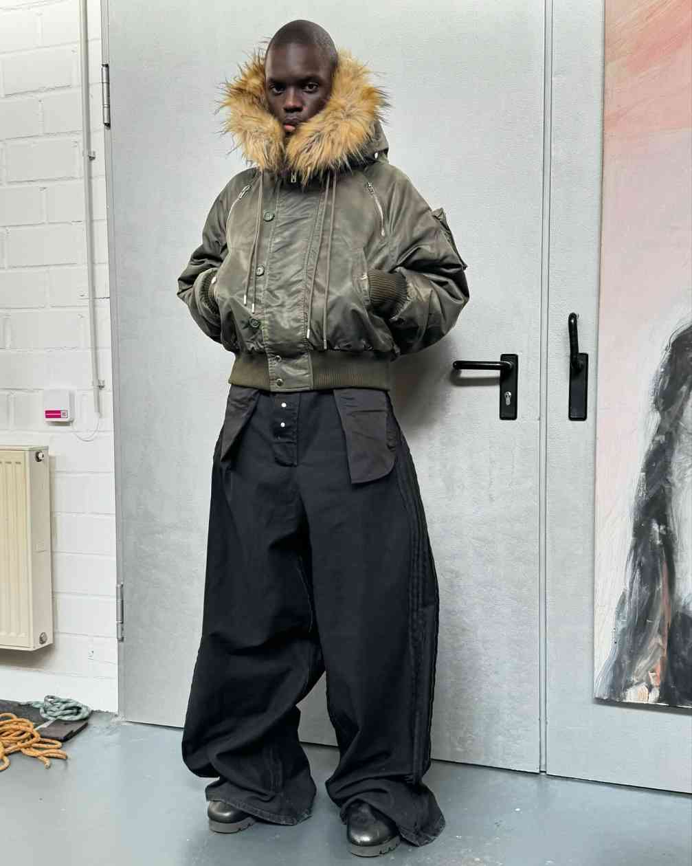 先说说近年来具备一定话题性但相对较为小众的品牌,就率先引领了这一服装趋势。例如 NO/FAITH STUDIOS,其推出的 N2B 改良夹克以极具冲击力的设计语言带来新解法,将经典军事外套推向前卫时尚的全新高度。