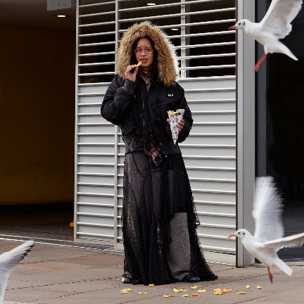 相较于 NO/FAITH STUDIOS 的前卫表达,Jaded London 则在亚文化和街头风格中寻找突破,以更贴近大众的方式,联手 Schott NYC 重新演绎 N2B,将军事复古与街头风格的结合推向新高度。夹克采用 Schott NYC 标志性的飞行夹克廓形,通过模特演绎能看出,整体还是比较偏合身的版型。
