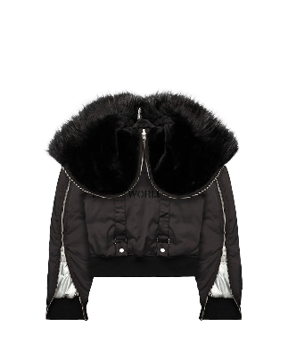 这件夹克整体设计像是在 MA-1 的版型基础上融入了一点点 N2B 的细节精髓,并对两者进行了一定程度上的设计简化。最大的亮点在于其大面积的「食人花」毛领,与原版 N2B 的另一个形态视觉效果一样,为寒冷天气提供极佳的保暖效果,同时增加了视觉上的奢华感。光滑的黑色尼龙面料为整体增添现代感,前襟配有的复古黄铜色拉链与之形成对比,细节加分。