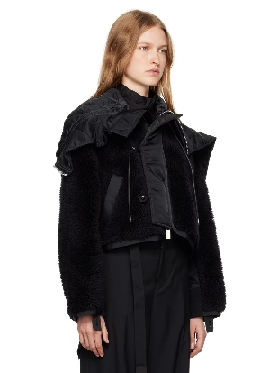 夹克主体由 55% 丙烯酸和 45% 聚酯纤维和尼龙面料拼接打造,内衬和填充均为 100% 聚酯纤维,提供轻便却温暖的穿着体验。整件单品在日本制作,彰显高超的工艺水准和质感细节。而兜帽部分则配有抽绳,并可以通过像两侧进行拉链达到完全封闭的感觉。
