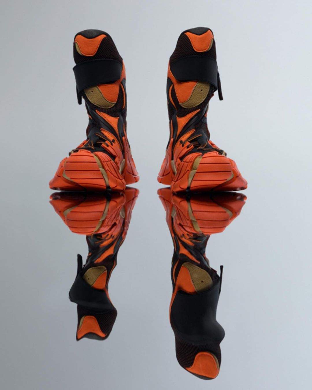 所有 Tormenta 身上一眼可辨的另类设计思路,都可谓师承于 Tossu;而 Tossu 自身袜套外包裹「盔甲」式立体不规则框架的嵌套式画风、同样大胆且极具视觉冲击力的色彩运用,也为 CAMPERLAB 在运动鞋类目开辟独树一帜的风格赛道,奠定了坚实基础。