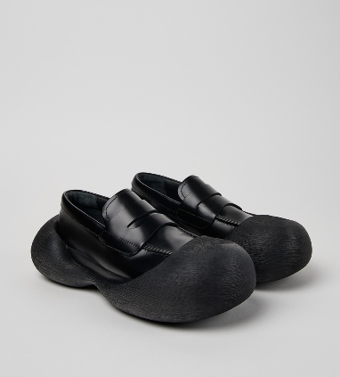 而即便是近期 CAMPERLAB 的新品阵中,也有着像 Caramba 这样引发上脚热潮的非常规画风皮鞋款式:传统乐福鞋面被包裹上动漫视觉的椭圆形鞋头鞋底,猎奇的二次元美学效果,也赢得了不少明星 Icon 和前卫造型玩家的心。