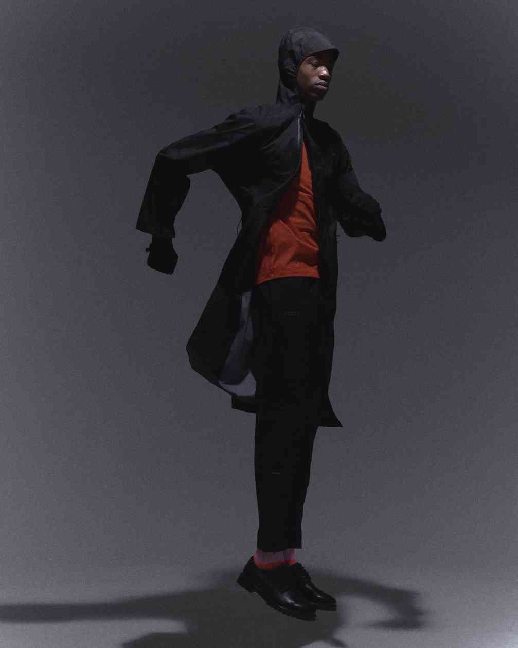 同时,在视觉风格已经相对成熟的品牌中,这一团队也能继续探索出多样化的呈现效果。例如为 Soar 打造的 ProtoLab Raincoat 产品型录,整体使用暗光环境凸显实验性质的产品定位。亮色内搭以及脚踝、面部的撞色单品,结合动态姿态,展现将技术融入纯粹赛事装备的理念;为 XLIM 制作的造型特辑中,则通过背光、反转色等处理方式,巧妙地突出不同材质的细节。