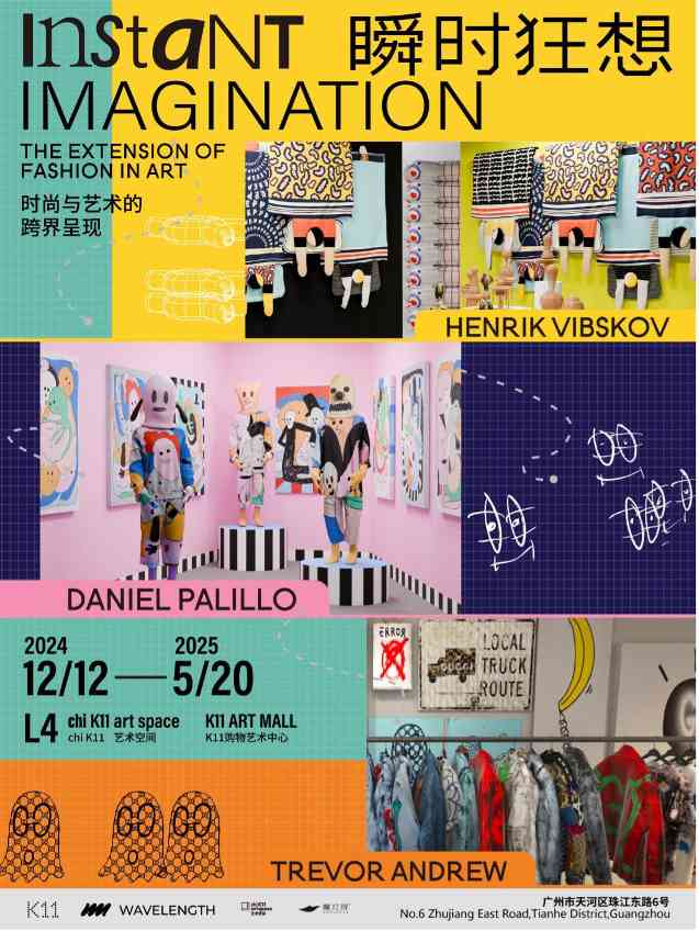 2024 年 12 月 12 日,《瞬时狂想》时尚与艺术跨界大展在广州 chi K11 艺术空间盛大揭幕,展览将持续至 2025 年 5 月 20 日。此次展览由 WAVELENGTH 策展团队联合广州 K11 打造,特邀丹麦艺术家亨利克·维斯科夫、芬兰设计师丹尼·帕里洛以及加拿大街头艺术家特雷弗·安德鲁三位国际知名艺术家,以先锋视角探讨时尚与艺术的跨界融合。