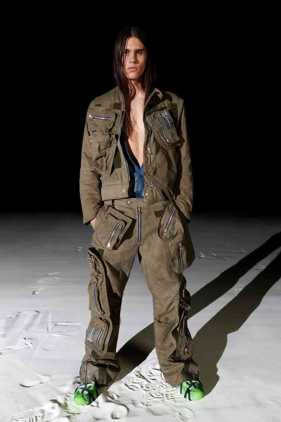 可惜强劲势头并未持续太久,从去年开始,太过风靡的人气,也为 DIESEL 带来恶评:「非主流」、「精神小伙」穿搭的声音,不绝于耳;而从品牌刚刚释出的新季作品来看,DIESEL 和 Glenn Martens 似乎已下定决心「一非到底」。