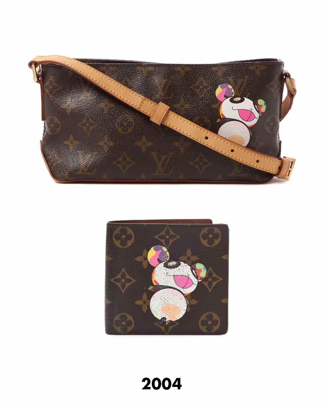 得益于千禧年代流行文化和「It Bag」风潮的推动下,村上隆为 LOUIS VUITTON 带来了巨大的商业成功和文化影响。这个系列当时以黑白涂层的帆布为基底,运用不同的色彩将品牌经典的棕色老花图案重新构想为生动多彩的设计,让象征高贵身份的奢侈品牌瞬间充满青春和俏皮感,成为当时的现象级流行单品,很大程度上定义了 Y2K 美学,而村上隆也以此在国际视野内得到更多声量。