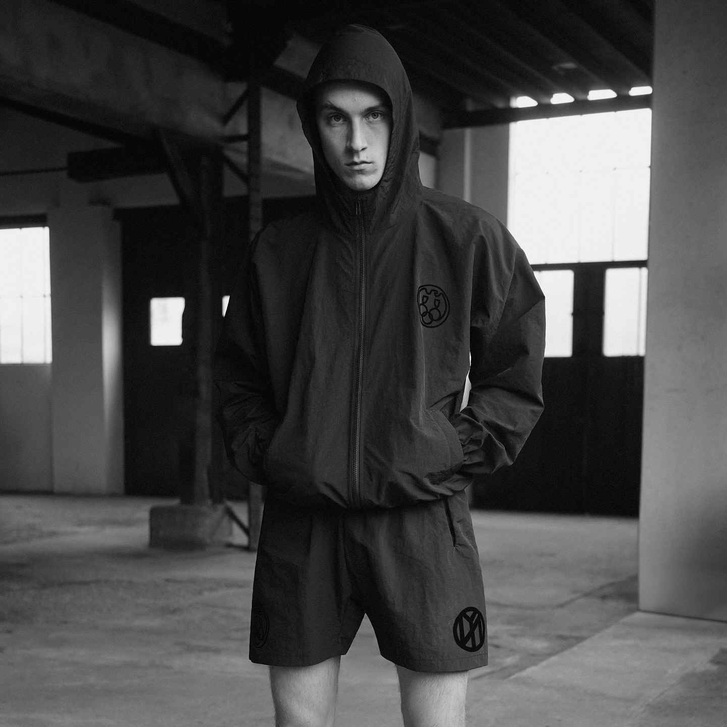 但在 Gosha Rubchinskiy 因种种原因于 2018 年隐退,Demna 在 BALENCIAGA 取得了颠覆性的成功,Lotta Volkova 也帮助 Miu Miu 完成了视觉呈现层面的迭代,二者在奢侈时尚领域逐渐摆脱了曾经前苏联审美内核下东欧青年文化的叙事,并完成了独立审美架构的搭建或者说是蜕变。沉寂数年后重新复出的 Gosha Rubchinskiy 在入驻 YEEZY 一周年之际,似乎并没有为后者带来足够的话题性或全新的审美灵感,不久前无预警发售的全新系列中依旧是熟悉的西里尔字母、哥特式字体以及 YEEZY 最新的秃鹰标识,并致敬了《纽约先驱论坛报》和让·吕克·戈达尔经典作品《精疲力尽》,承载这些文化符号的仍然是短宽廓形的卫衣卫裤、基础款短袖等没有太多剪裁考量的单品,这种东欧工人阶级青年文化的审美体系与首个系列并无两样,但前苏联美学的热度早已消退,没有掀起足够的话题度也是情理之中。