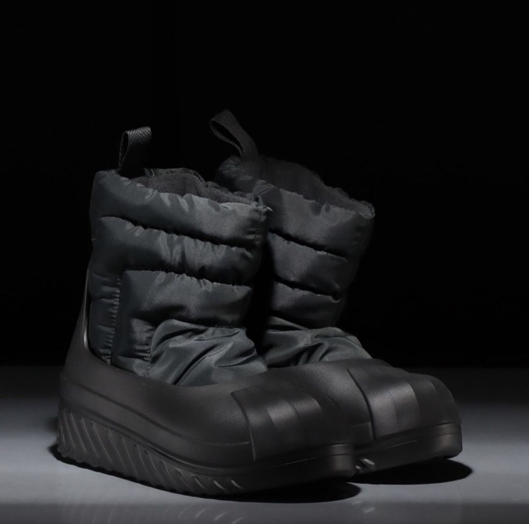 沿袭近年来对经典鞋型作出创意改制的思路,adidas Originals 这双 AdiFOM Superstar Winter Boots 将招牌的贝壳头元素,通过发泡材料鞋套的形式予以呈现;内里羽绒棉样式的靴套,则将穿着舒适感与保暖性进一步提升。