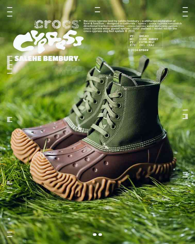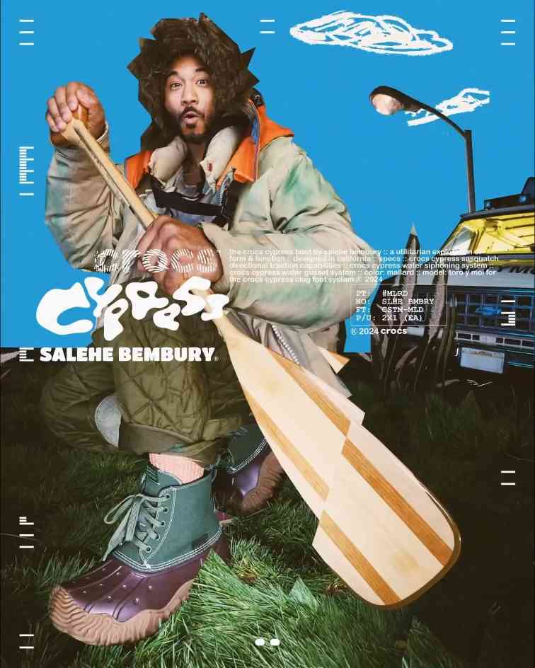 还有一些旧 YEEZY 的关键人物则已经进入了鞋履行业更加核心的位置。Salehe Bembury 通过极具辨识度的个人元素,相继与 New Balance、Crocs、Moncler 等品牌进行合作,更是于 2023 年被 Crocs 任命为 Pollex Pod 创意总监,带领品牌探索运动鞋领域。在此基础上又于去年官宣负责下一代 PUMA Hoops 的设计,但令人出乎意料的是,不久前曝光的与 PUMA 首款合作却并非 PUMA Hoops 产品矩阵中的篮球鞋款。