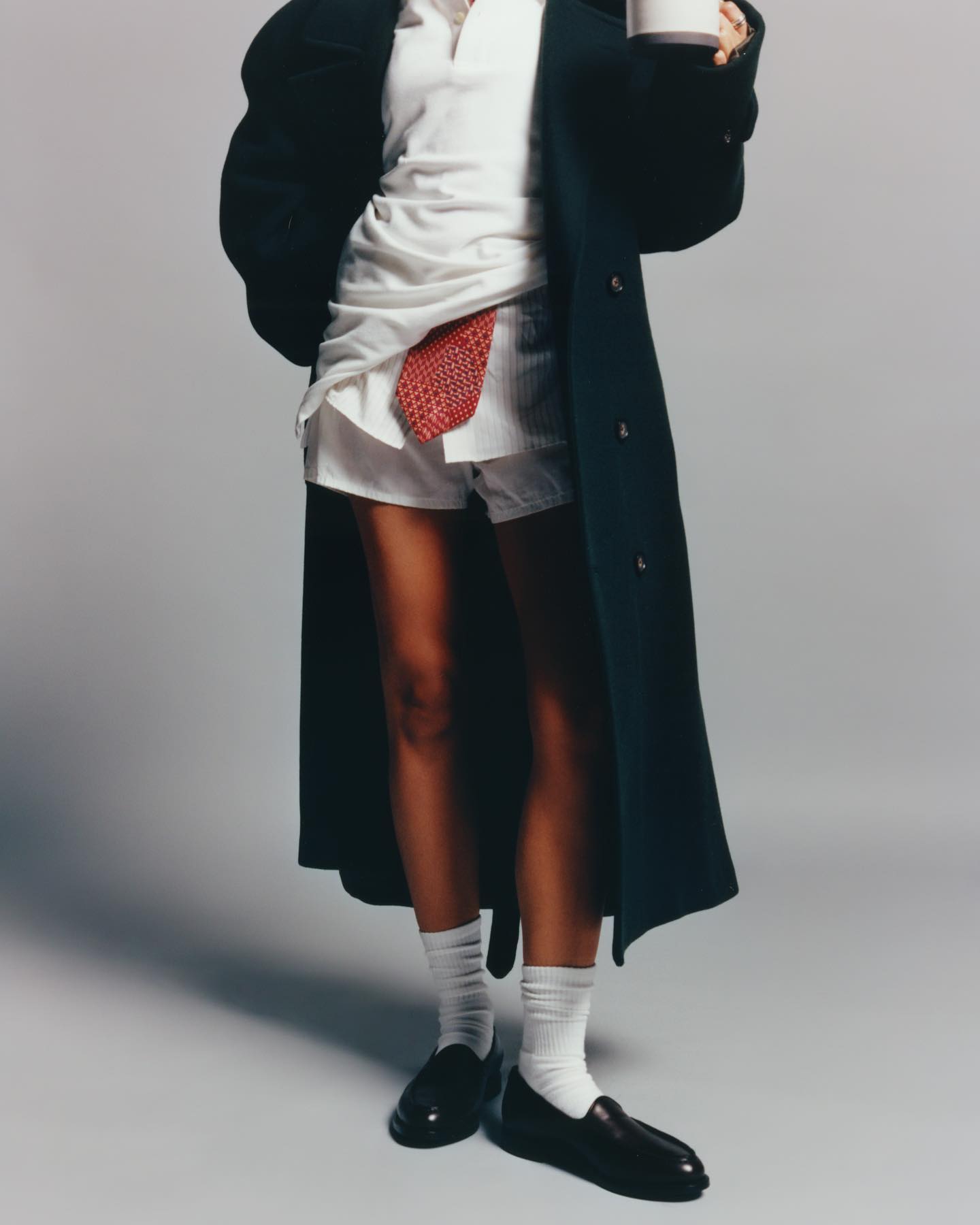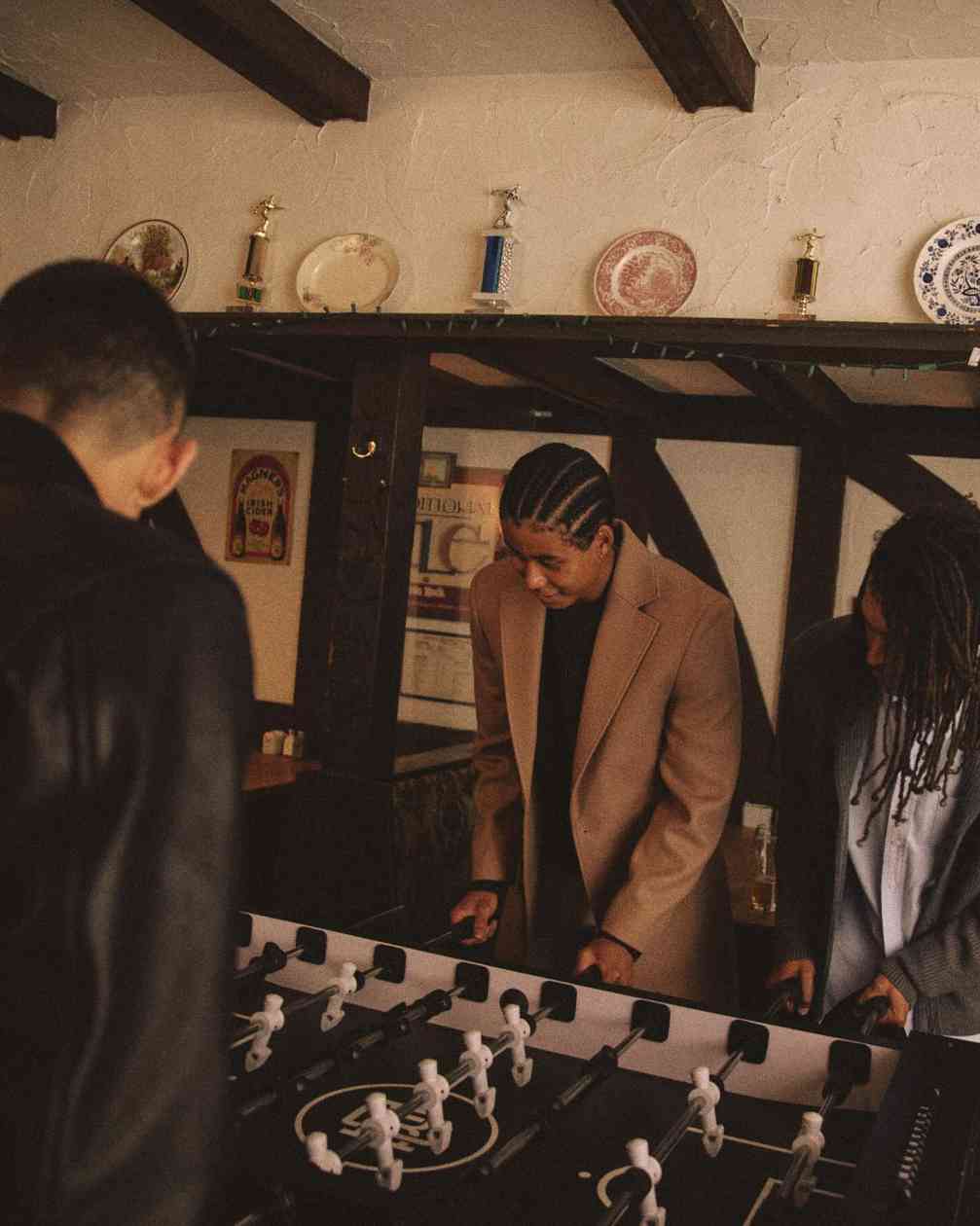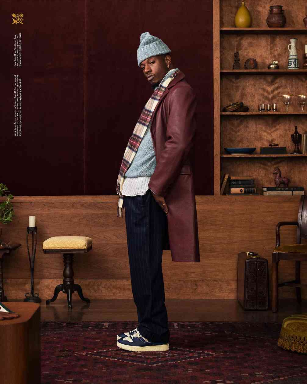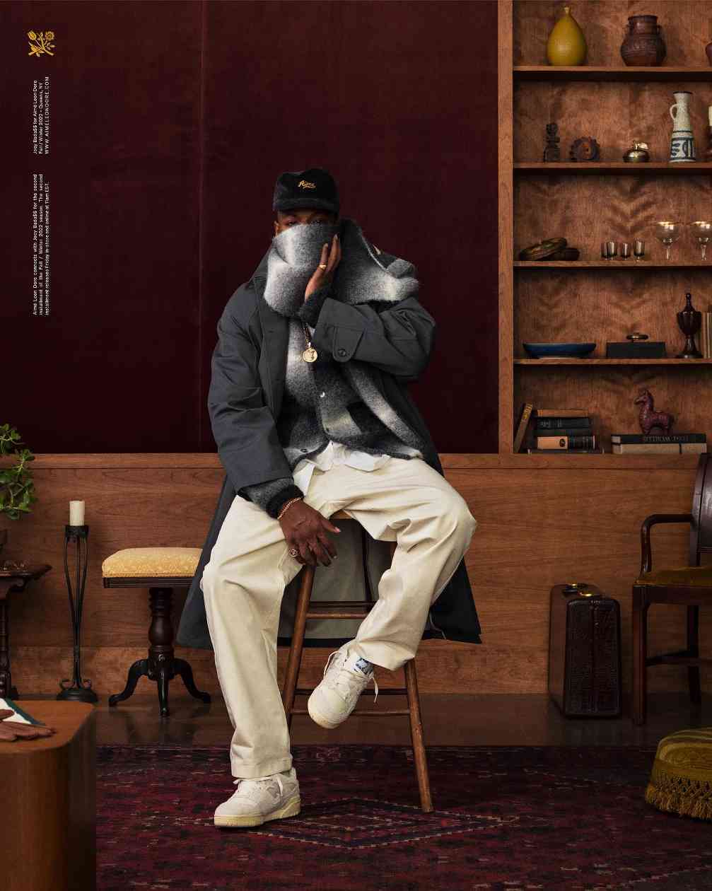 同时基于驳领与翻领复古大衣营造出的混搭造型被 Aimé Leon Dore 开拓出了更多慵懒精致的思路,在不久前邀来 Mach-Hommy 和 Davide Baroncini 出镜演绎的 2024 F/W 造型特辑中,重磅羊绒羊毛面料带来的挺括垂坠感配合 Double-knee 工装裤以及格纹长裤带来可玩性极高的雅痞层次感,这种对上世纪 70~80 年代北美着装风貌的二次诠释成功打造出游离于流行趋势之外的审美体系,甚至影响了当下很多品牌的设计趋向。