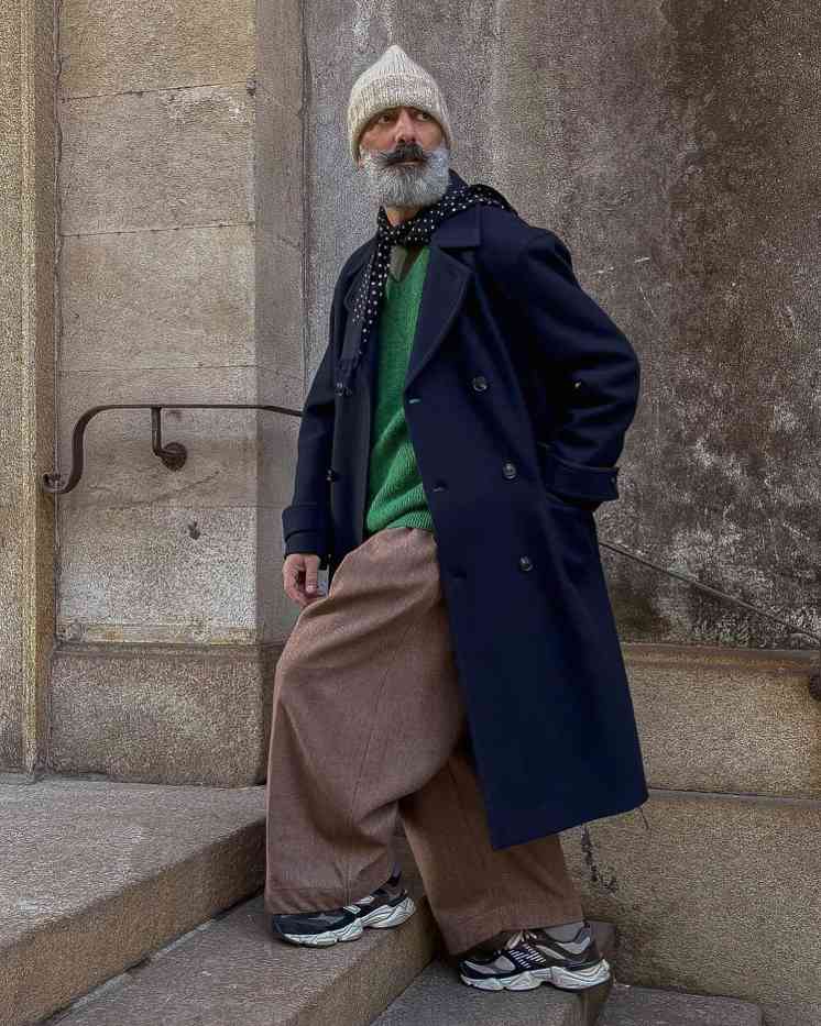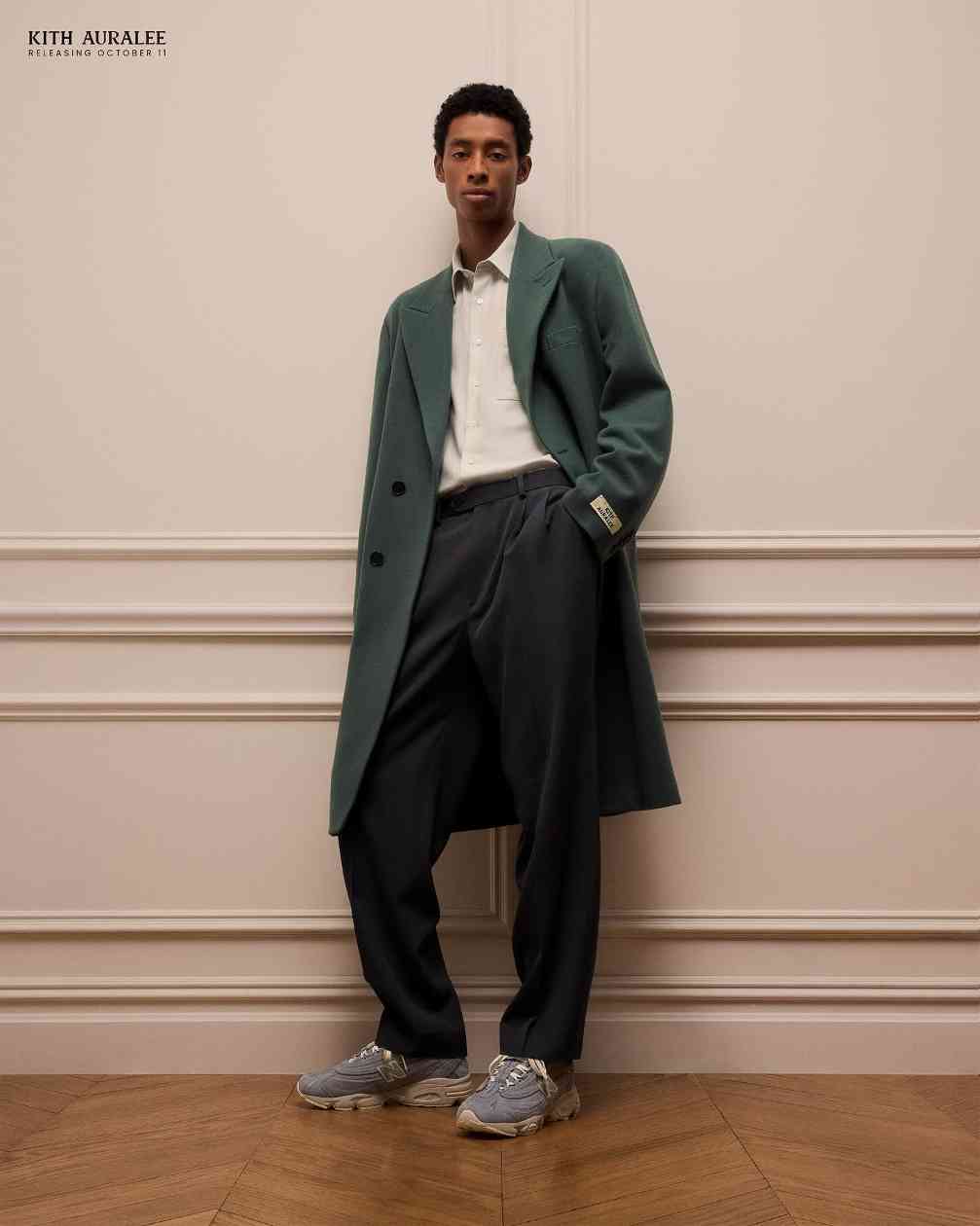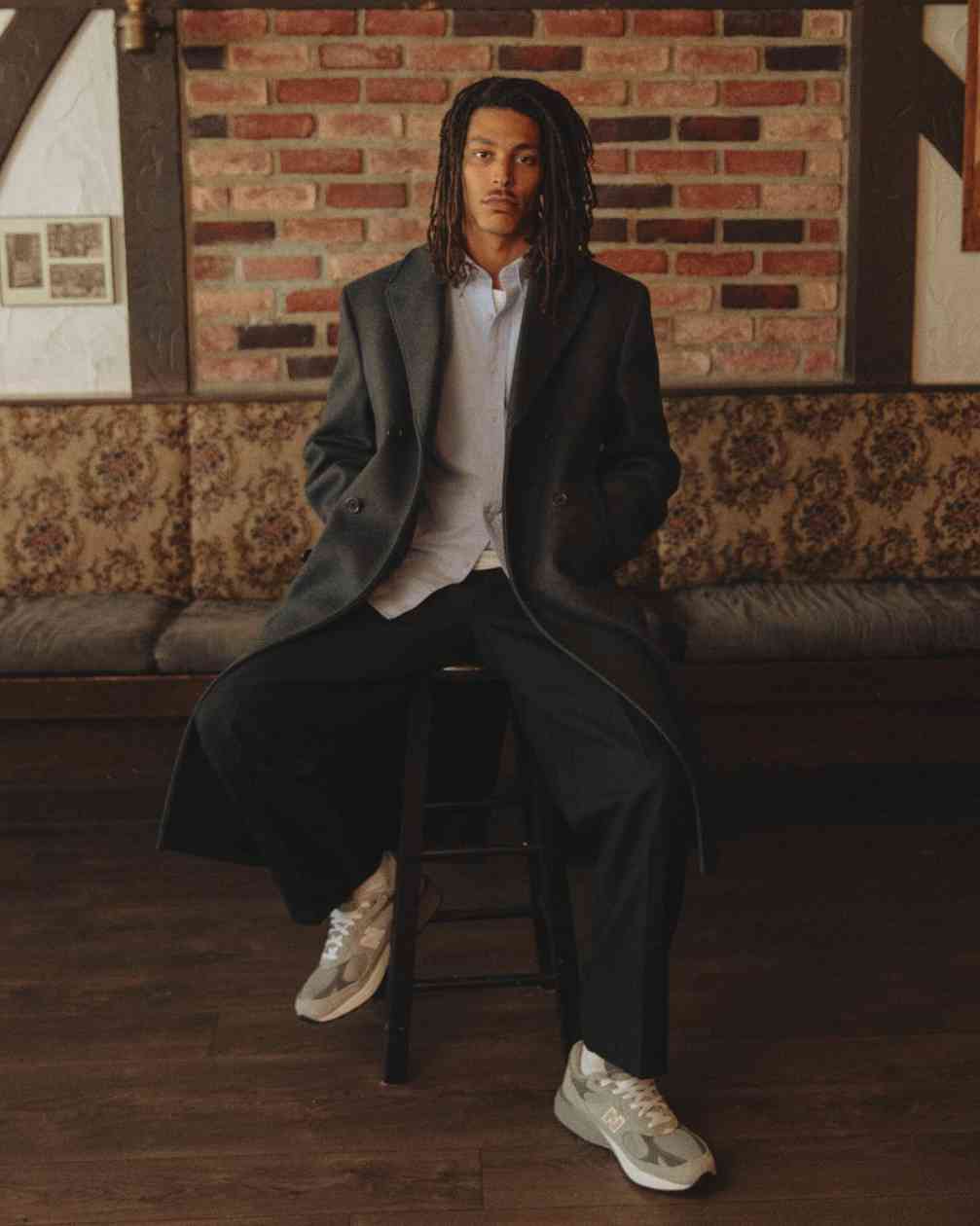 其实早在前两年 Aimé Leon Dore 与 New Balance 的合作系列型录中,驳领大衣与翻领大衣就成为贯穿整个合作系列的核心造型单品,其中驳领大衣+卫衣+运动卫裤配合年迈的素人模特演绎下成功烘托出全新的复古审美氛围,也是 Aimé Leon Dore 成功破圈的重要时尚线索。