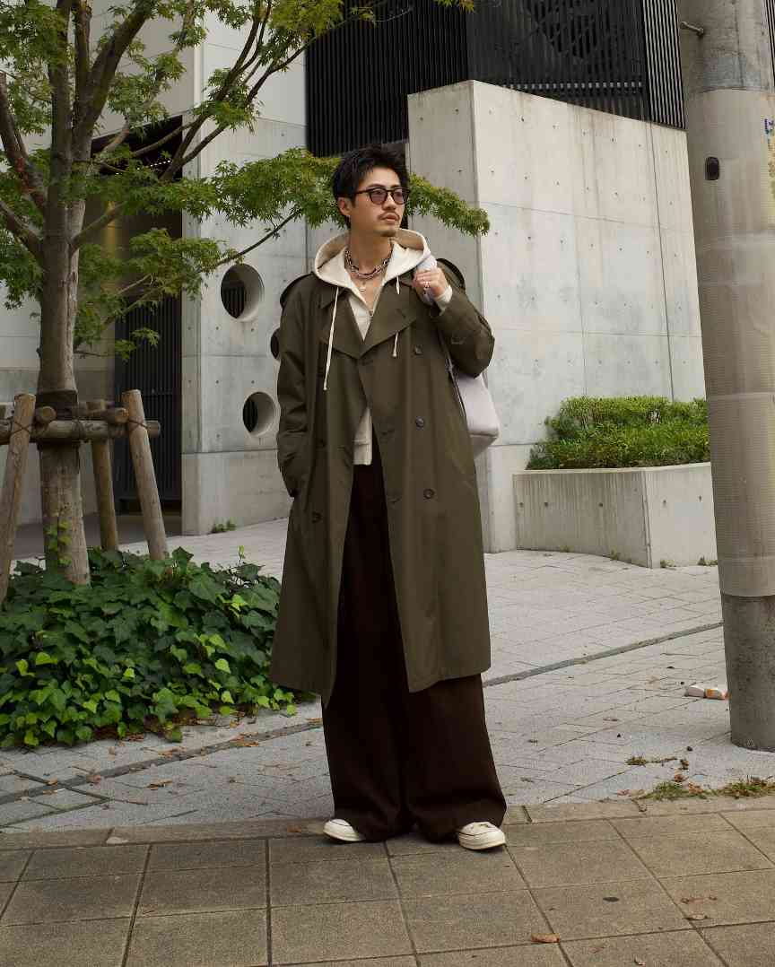 HAVEN 也在 2024 秋冬系列中带来了 GORE-TEX Pro 面料打造的翻领大衣并命名为「Interval Coat」,无独有偶,日前 JJJJound 与 Descente Allterrain 的合作系列中亦有一款翻领大衣释出,二者夹克式的合身剪裁在机能细节的加持下为都市户外主题提供全新提案,可以说是短宽剪裁的机能夹克之外更加成熟与正式的秋冬穿搭选项。