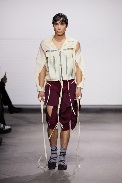 不过,这组作品还是遵循常规地选择了一些传统男装面料,模糊了休闲与正式之间的界限。设计师透露他的目标是建立一个可持续的工作室,推动时尚行业更加注重情感表达与可持续发展,并在日后有机会成为知名品牌的创意总监。