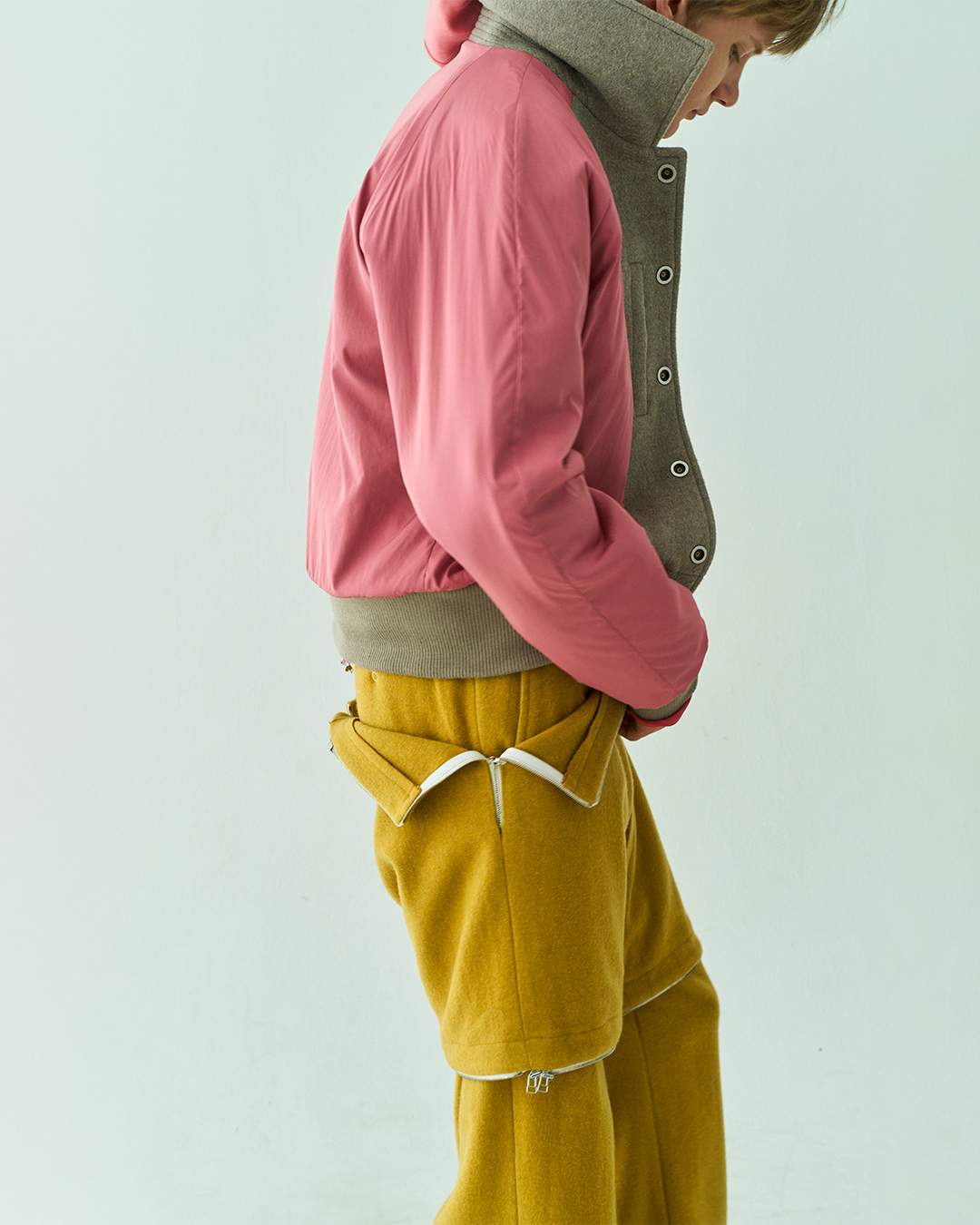 在 Dodam Gwon 与 Dukhyun Boo 看来,经典单品并不一定要透过激进的改造解构来传递全新审美体系,拉链与多层次裁片的组合以及具有视觉穿透力的手工染色工艺便可以唤起全新维度的时尚感知,就像自然界某些珍奇花朵或菌落一样,随着环境变化而改变生命形态,所以 DDAILIES 今后的时尚潜力不可小觑。