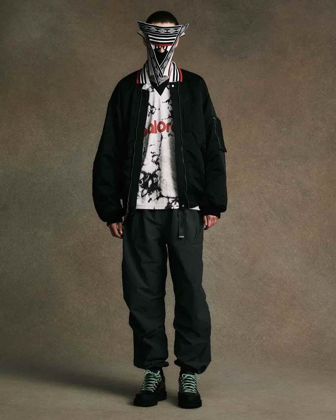 同时 VU 也在每季推出不同主题风格的套装,从七分袖衬衫+短裤的纯黑设定套装到复古丹宁工装套装再到西服套装,对于廓形的精准诠释使得与任何属性鞋款搭配都相得益彰,复古慢跑鞋或革靴均是如此。