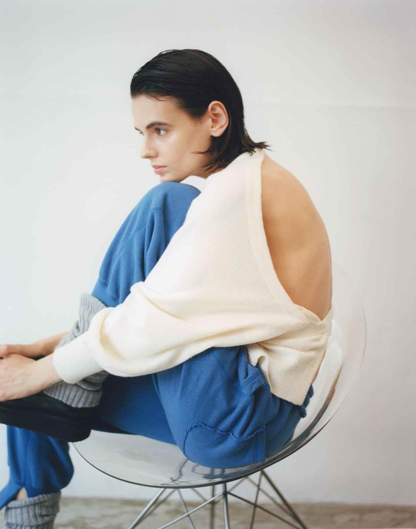 尤其是纯棉面料打造的基础款,细腻入微的肉厚感区别于常见的重磅质感,在精准的剪裁下呈现出优雅的堆叠效果,尽管没有任何醒目或夸张的元素仍然可以营造颇具穿透力的造型感。