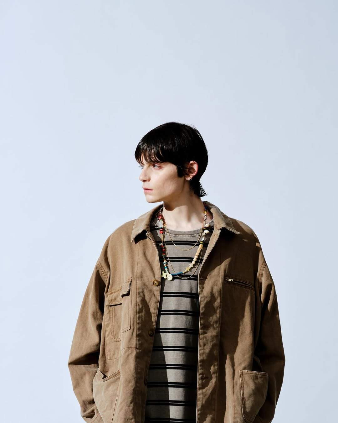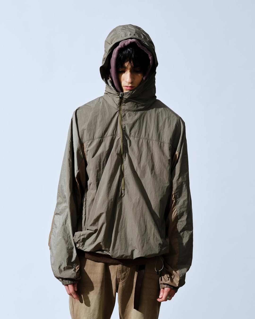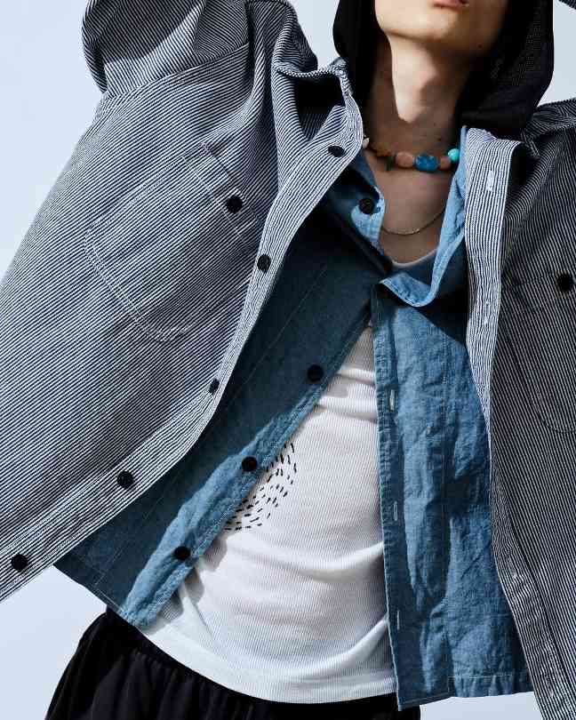 设计主脑 Kazuya Sugano 作为美式复古文化的爱好者自然也将这一时尚体系融入到 SandWaterr 中来,似乎 Kazuya Sugano 更想透过轻便的着用体验与利落的常规剪裁来完成审美架构的搭建,每件单品在脱离 SandWaterr 体系后仍然可以成为日常造型中十分百搭的一环,轻薄风壳、衬衫夹克以及工装外套均是如此。