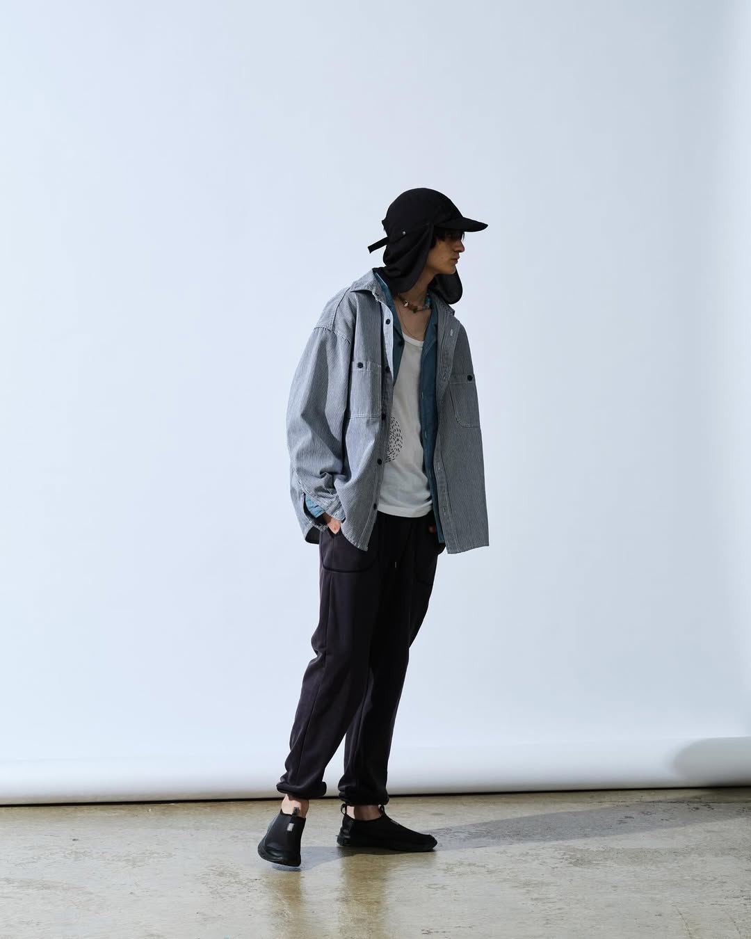 从某些角度来看 SandWaterr 与 ENGINEERED GARMENTS 有着诸多异曲同工之处,但 Kazuya Sugano 对于美式或英式复古的提炼会让驾驭门槛变得更日常化,不执着于某个风格的重现,而是回归日常,让通勤造型更具造型深度与可玩性。