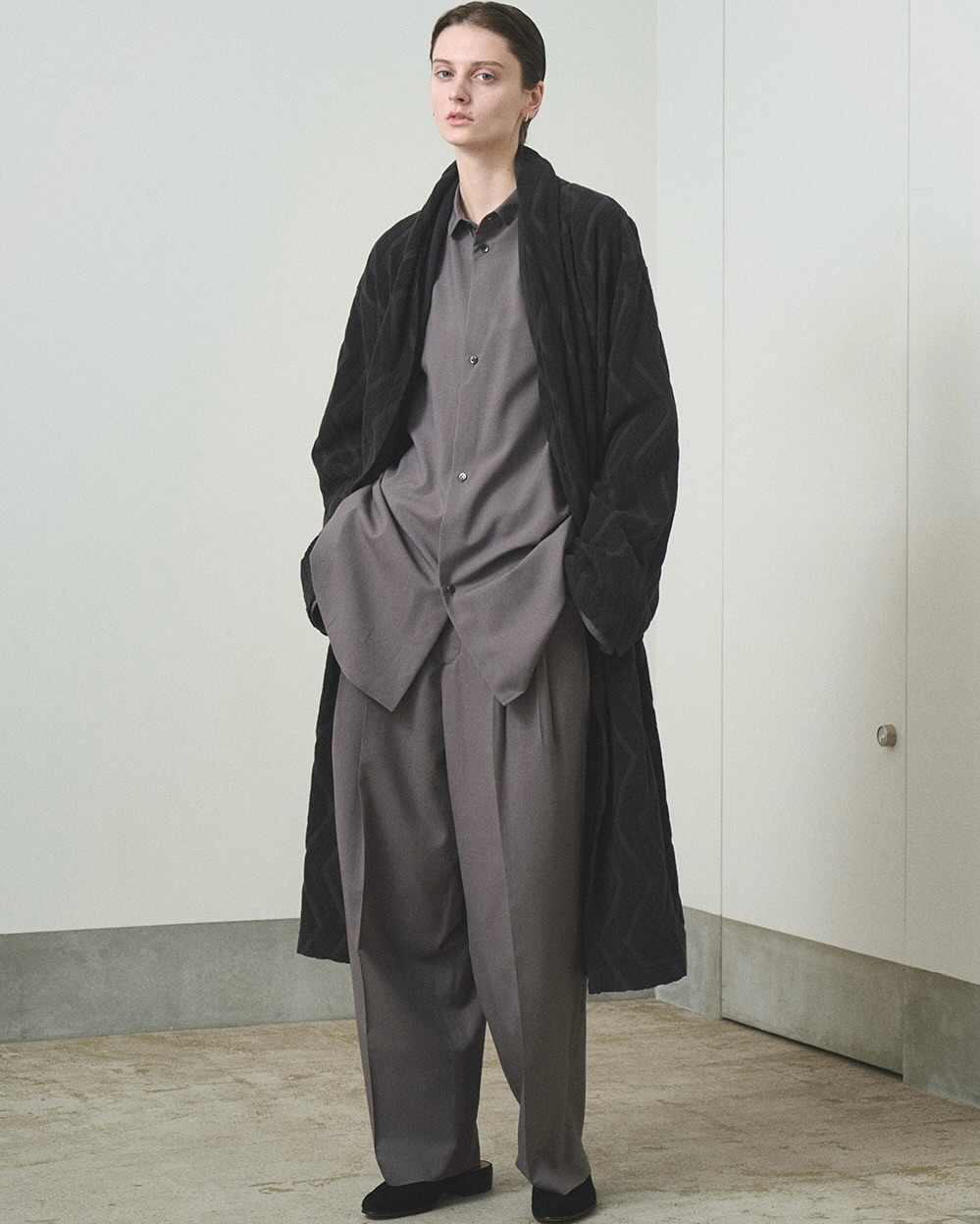 TROVE 每一季都在欧洲复古时尚与日本传统服饰文化中寻求自洽的审美逻辑,同时对于风格辨识度的搭建也相对克制,更想通过每件单品细节调度上的呼应来完成具有淡泊气质氛围的高级日常感诠释,同时对于鞋履的搭配十分宽容,一切以慵懒和舒适为前提。
