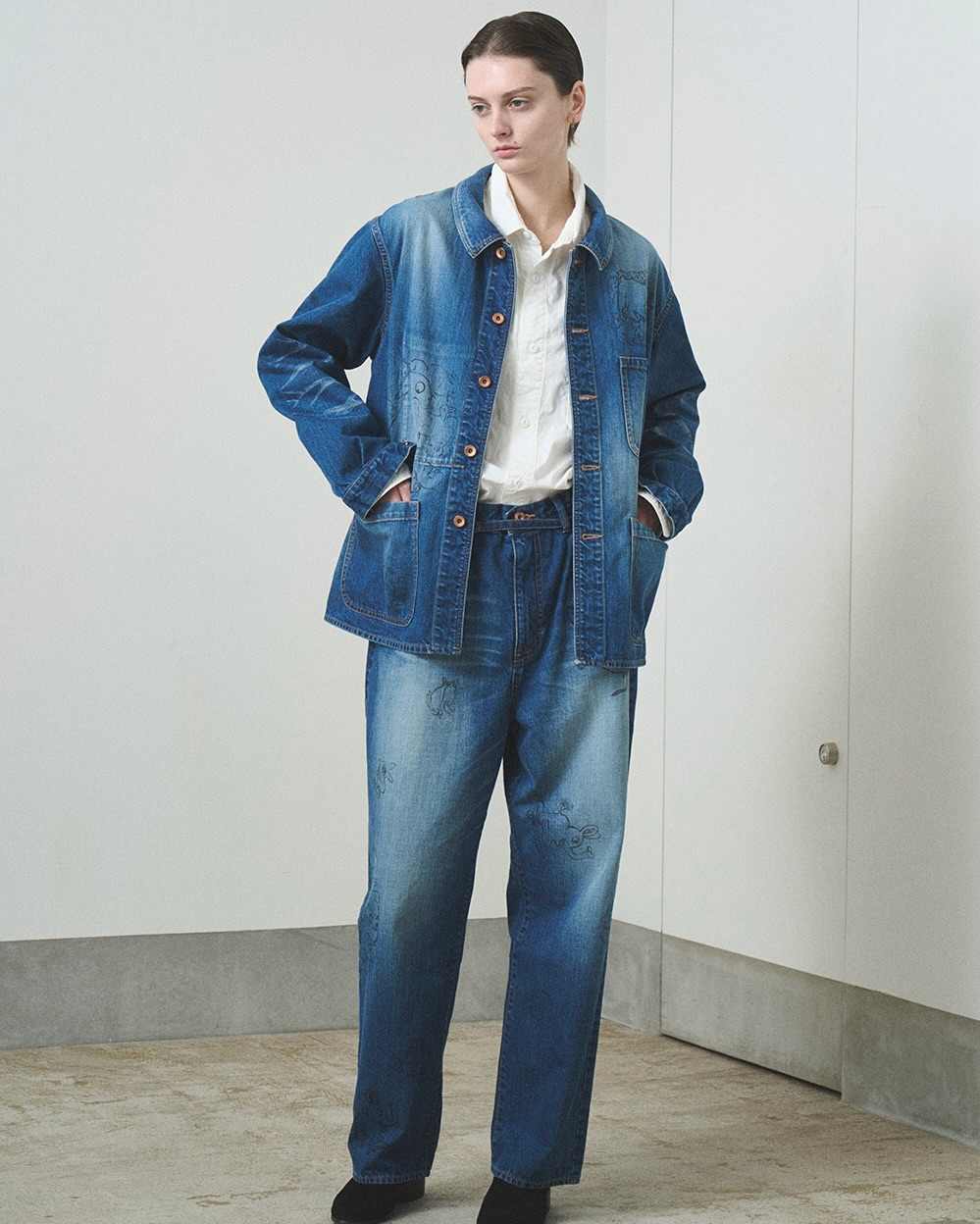 所以依靠 BEAMS 深厚品牌文化积淀与性价比壁垒的 maturely 可以尝试不同肌理的面料,配合精湛的做旧工艺让一系列经典复古廓形重新焕发出中性、暧昧但又宁和轻松的层次感氛围,比较有代表性的水洗做旧丹宁、复古 Blazer、蕾丝透视打底、工装衬衫等等均是可玩性极高的基础款单品。