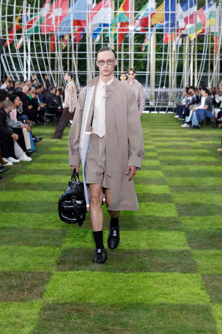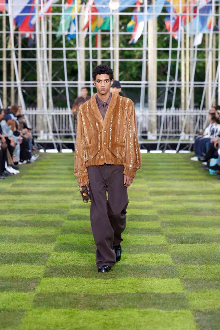 本次大秀秀场位于可以俯瞰整个巴黎景色的联合国教科文组织总部,同时也是秀前发布的序幕电影的所在地。该片呈现了扮演成外交官的孩童们前往聆听 Simon Njami 的讲座,当这位专注于研究非洲当代艺术和摄影的瑞士策展人兼艺术家在影片中提出「人类多样性的连结和未来世界」的言论时,LOUIS VUITTON 2025 春夏男装系列的核心思想呼之欲出。